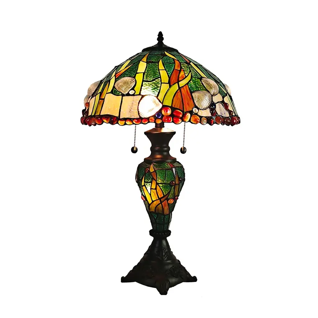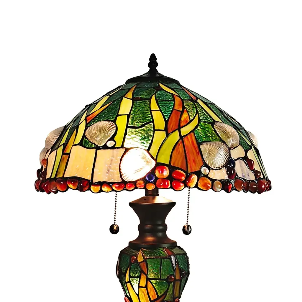 Coral Seashells Tiffany Table Lamp With Night Light - Coffee Black