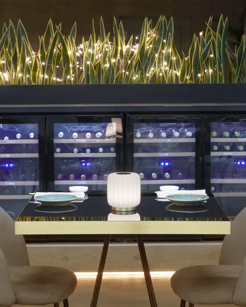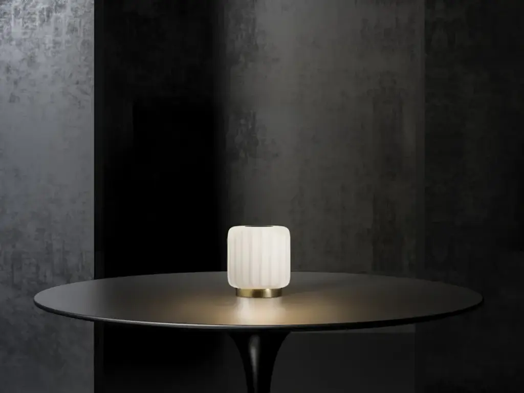 Cordialina is the table lamp with rechargeable battery which recalls the Art Deco style that inspired the whole Cordiale collection, composed by bar counters and lamps. The elegant design, embellished with brass elements, and the homogeneous light make Cordialina ideal to create a discreet and welcoming table centrepiece.Lighting system: Kit LED - 1W battery RGB LED - IncludedWiring: No power cableNotes: 1w battery rgb led system with remote control and usb plug power supply included