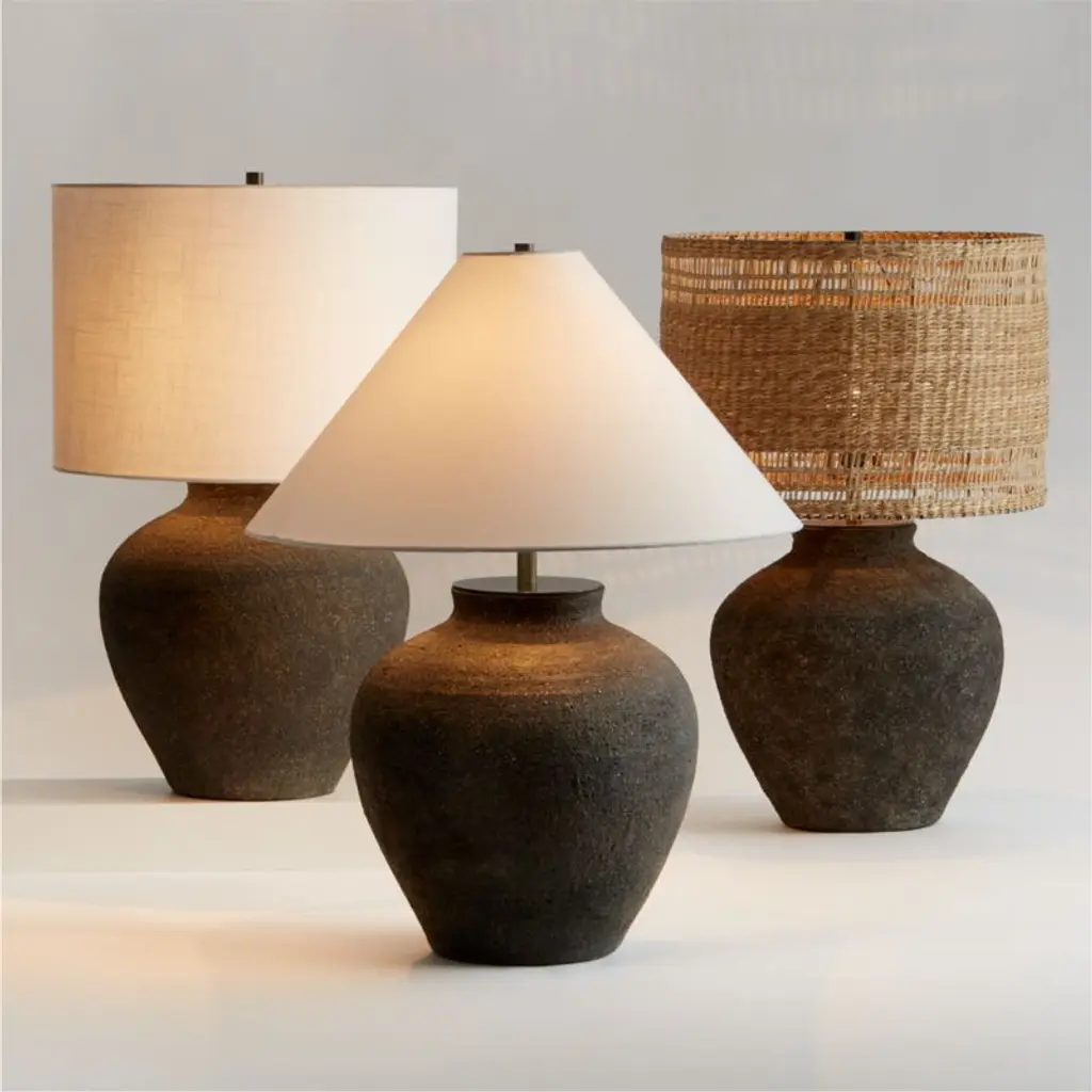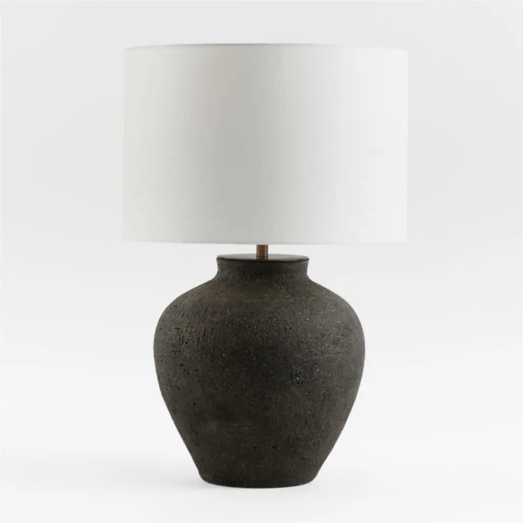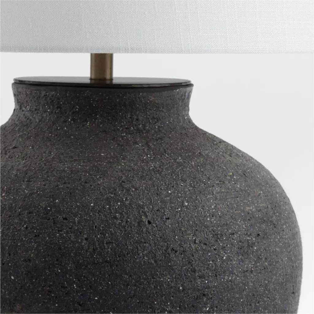 With its ginger jar curves and rustic finish, our Corfu table lamp illuminates interiors with perfect proportions and nuanced style. A painted blackfinish lends an artisan-like look to the base, while the drum shade complements with the neutral color and texture of the linen. Perfect for any room in the house, the Corfu table lamp is ours exclusively.