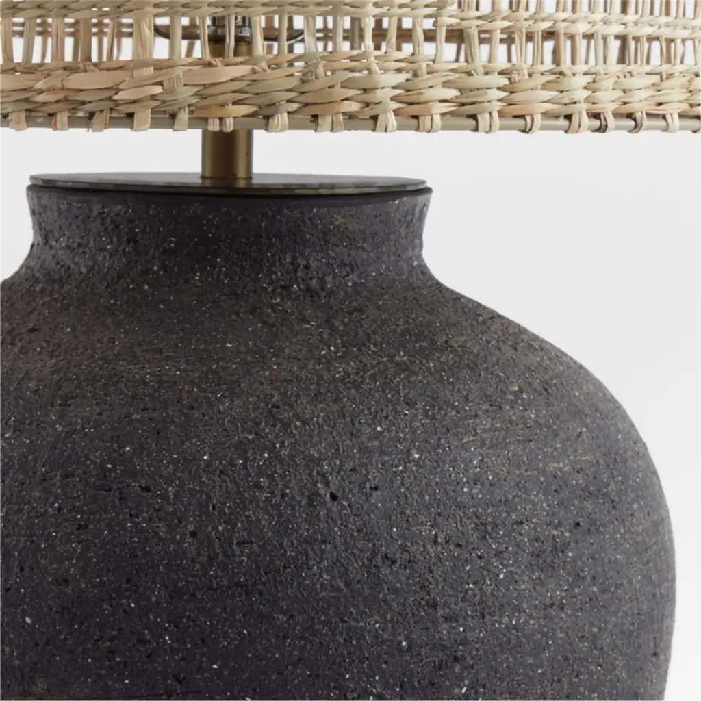 Corfu Black Table Lamp With Woven Natural Shade 26.6"