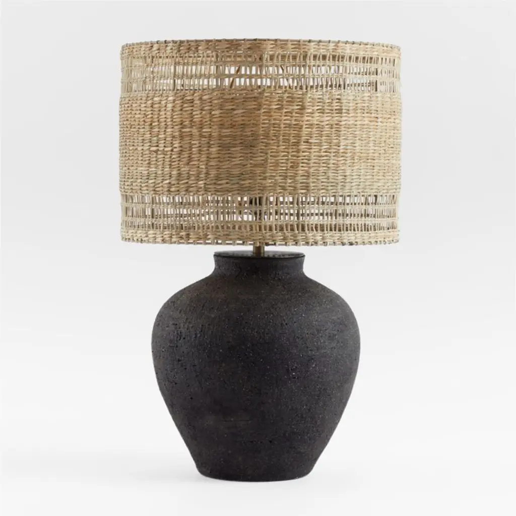 With its ginger jar curves and rustic shade, our Corfu table lamp illuminates interiors with perfect proportions and organic style. A painted black finish lends an artisan-like look to the base, while the breezy drum shade woven of seagrass complements with the natural color and texture. Perfect for any room in the house, the Corfu table lamp is ours exclusively.