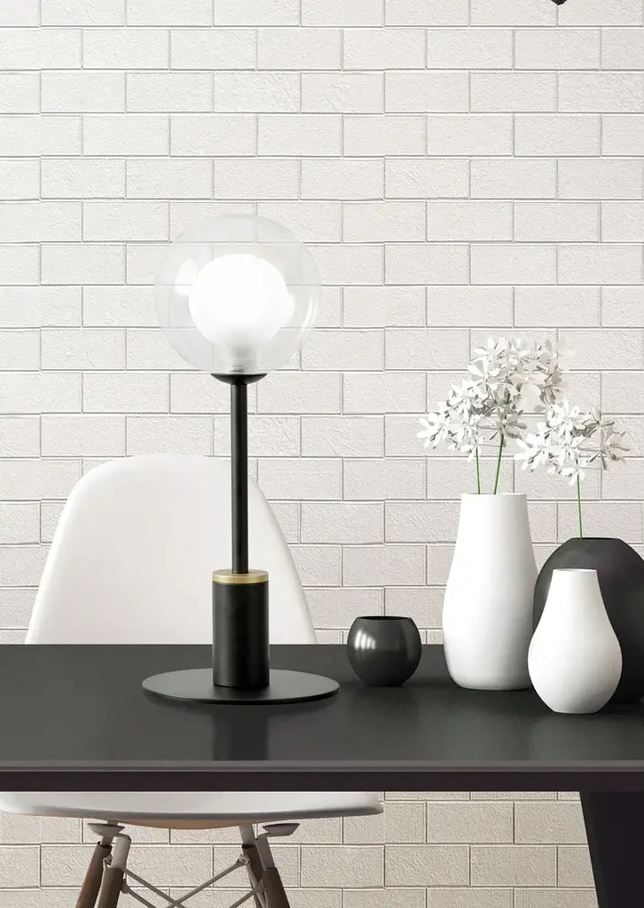 Cosmo is a 1-light table lamp made of transparent borosilicate glass on the outside and satin-finished inside with black painted metal frame with brushed gold detail. The lamp with transparent cable is equipped with a dimmer.Technical information:- Light source: G9- Power: 1 x max 40w- Dimmer