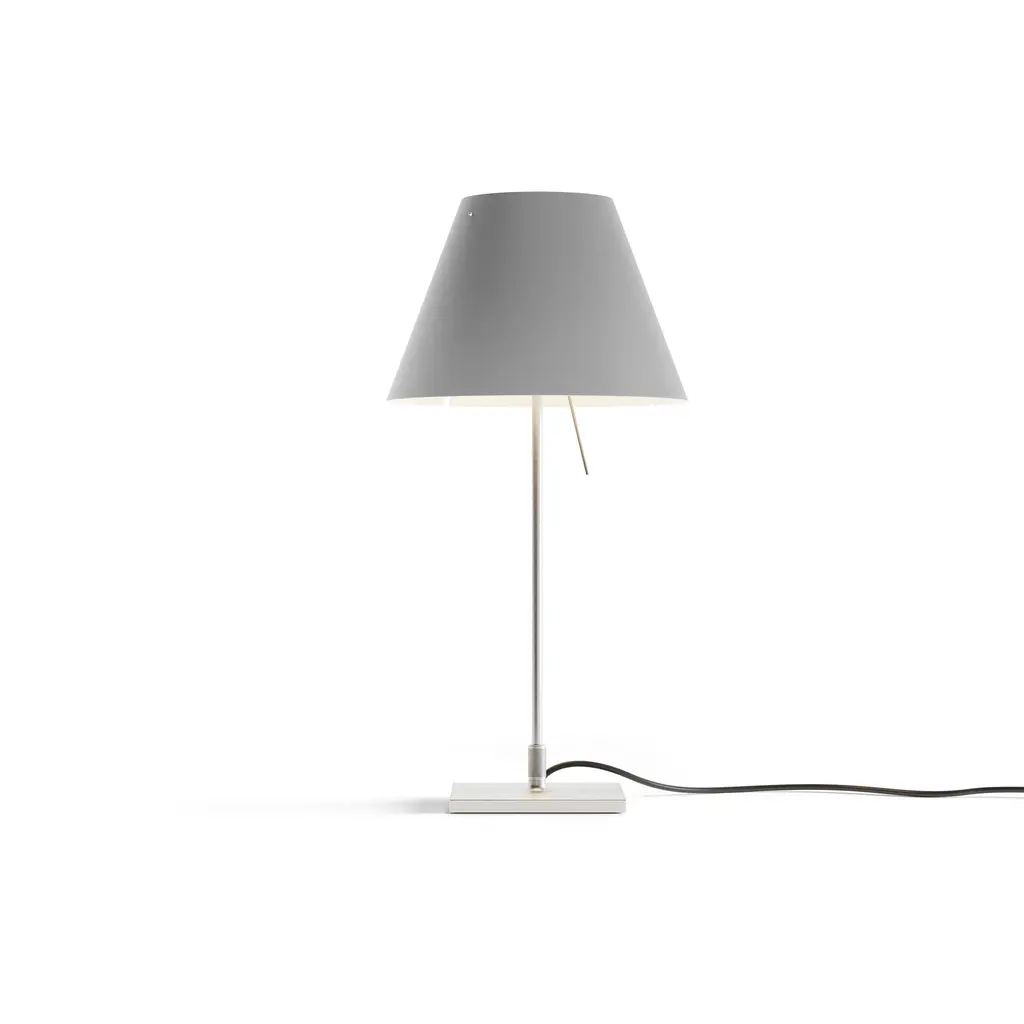 The Costanzina Table Lamp from Luceplan exudes elegance with its discrete, solid presence. Crafted from aluminum and a polycarbonate shade, this lamp is sure to make a tasteful addition to any room. Its robust construction gracefully balances on two points, offering a visually captivating look that is also functional - the shade won't fall if bumped. Enhance your living space with a touch of sophistication with the Costanzina Table Lamp. Highlights