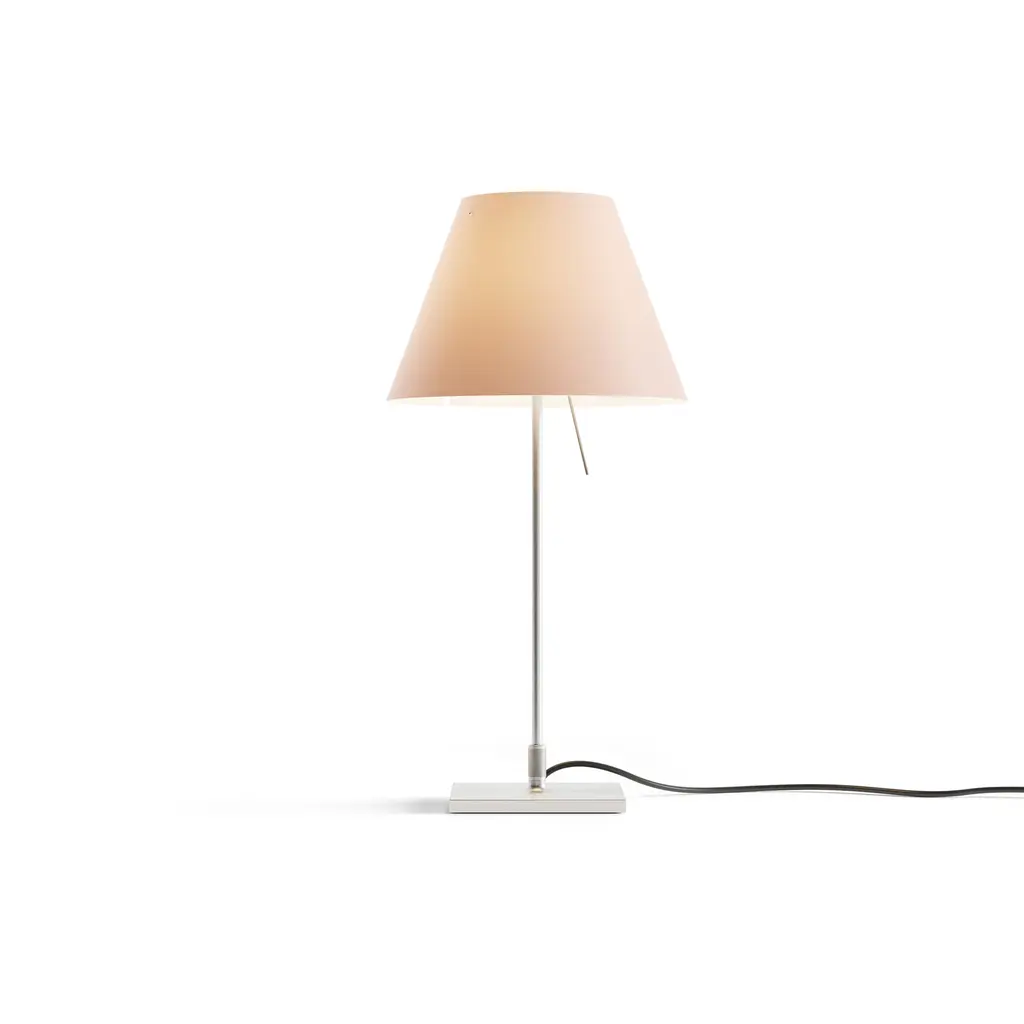 The Costanzina Table Lamp from Luceplan exudes elegance with its discrete, solid presence. Crafted from aluminum and a polycarbonate shade, this lamp is sure to make a tasteful addition to any room. Its robust construction gracefully balances on two points, offering a visually captivating look that is also functional - the shade won't fall if bumped. Enhance your living space with a touch of sophistication with the Costanzina Table Lamp. Highlights