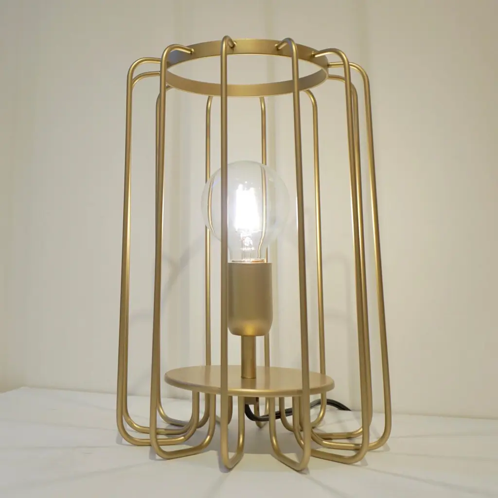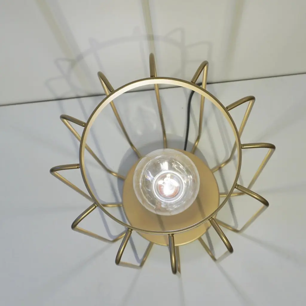 Cosulich Interiors in collaboration with Delta Contract.Future Design is here, this innovative minimalist design, yet airy and elegant, is made to harmonize in any surrounding environment and combines Art with energy, functionality and lightness. The elongated cylindrical shape of thin metal rods, that evoke emotions of flowing air, embraces the light source supported by a central round plate, the finish here is gold lacquer and is customizable.Available also in the same design a floor lamp, a pendant and flush mount.
