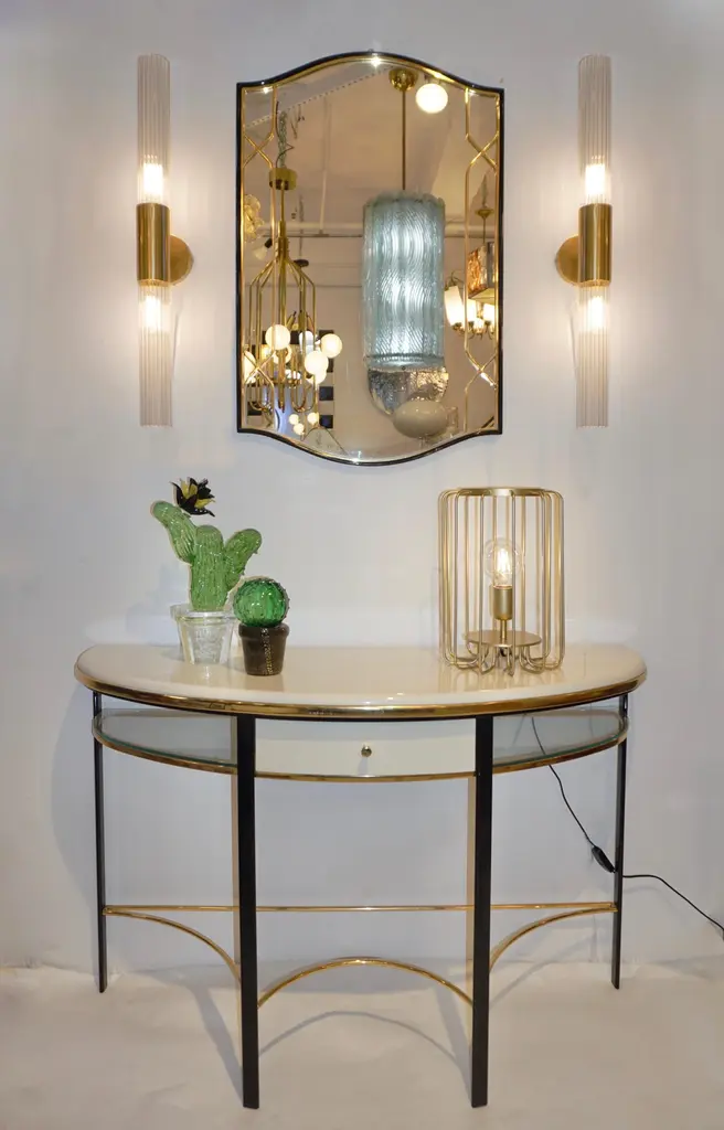 Cosulich Interiors Minimalist Italian Futurist Gold Brass Metal Open Table Lamp