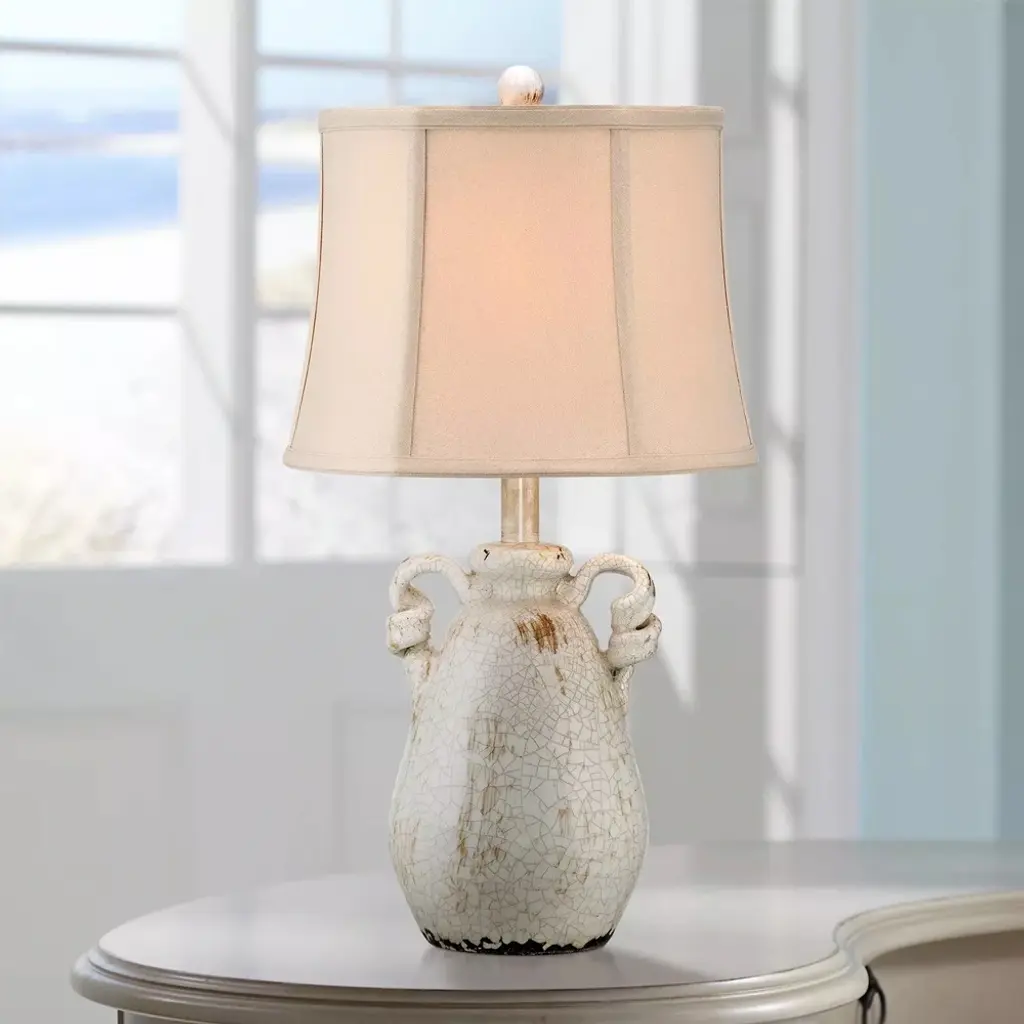Country Cottage Accent Table Lamp 22" High Crackled Ivory Glaze - 12" X 22" - 12" X 22" - Ivory