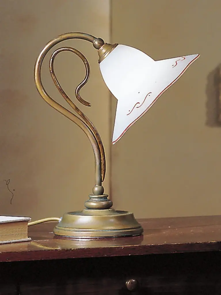 • Please reference last two images for lamp and shade color. This table lamp is part of the country line collection which is known for its unique design and modest old-world flare . The 1804''s beautiful florentine metal work and wide brimmed venetian shades come together in a distinctive way giving this fixture a rustic undertone while maintaining its functionality and romantic look. The 1804 is well-suited for applications that require concentrated local light for activities such as reading. This table lamp goes well on any table, whether the table is in the den, living room, bedroom, kitchen, or tasting room. To add to a space''s drama, provide general lighting with a dragonfly''s chandelier, pendant, or other appropriate fixture and place this table lamp near by. Although it is small in stature, you will be surprised at how much attention this fixture commands. Available metal finishes include ga and rg and available shades are 20, 40, 50 and 90.More about the country line collection: the country line is derived from the 20th century italian artisan movement and is distinguished by its particular design that inspires lightness and essentiality. Several of the lighting fixtures have a counter balance weight which enables for easy height adjustment. While the overall tone of this collection is similar to that of the country green, the ornate ironwork and gentle shade provide for a more classical look. The glass shades can illuminate rooms of any size and the unique arms on these pieces will make them the highlight of your home. Items in this collection include four chandeliers, one pull-down chandelier, seven wall sconces, five pendants, three pull-down pendants, two floor lamps/torchiere, two table lamps and two ceiling mounts. Finishes include black (graphite) with silver leaf details and rust with weathered brass (verdigris) details. Venetian glass options include satin straw (20), satin white with brick-red details (40), satin white with blue details (50) and White Scavo (90).Bulb Type: E12 No. of Bulbs: 1 Watts: 60W Glass: Satin White and Brick Red