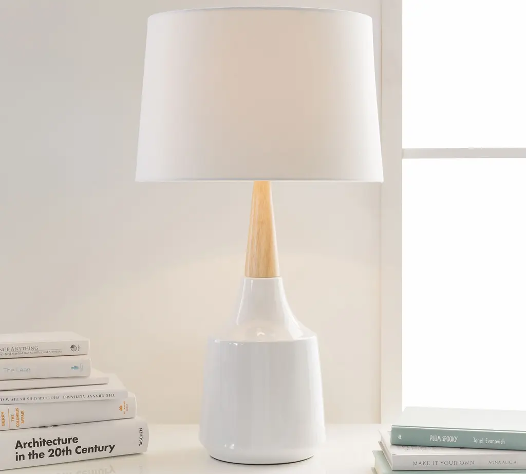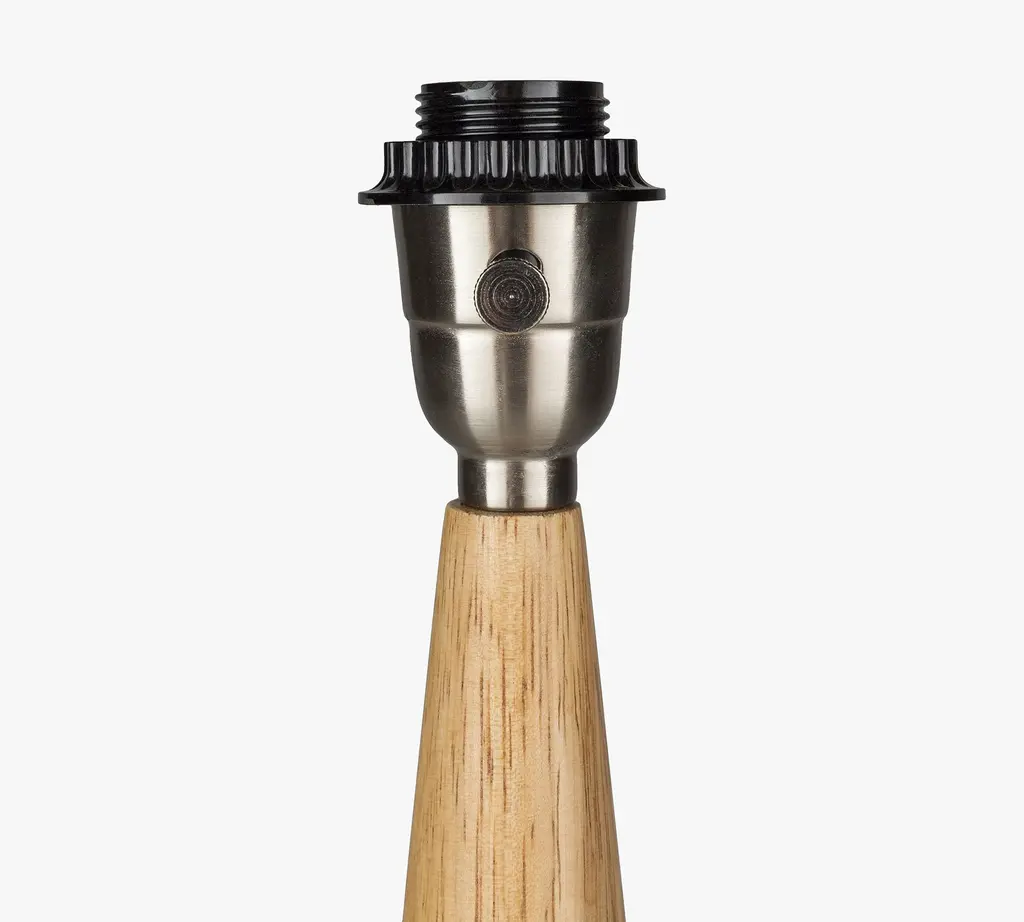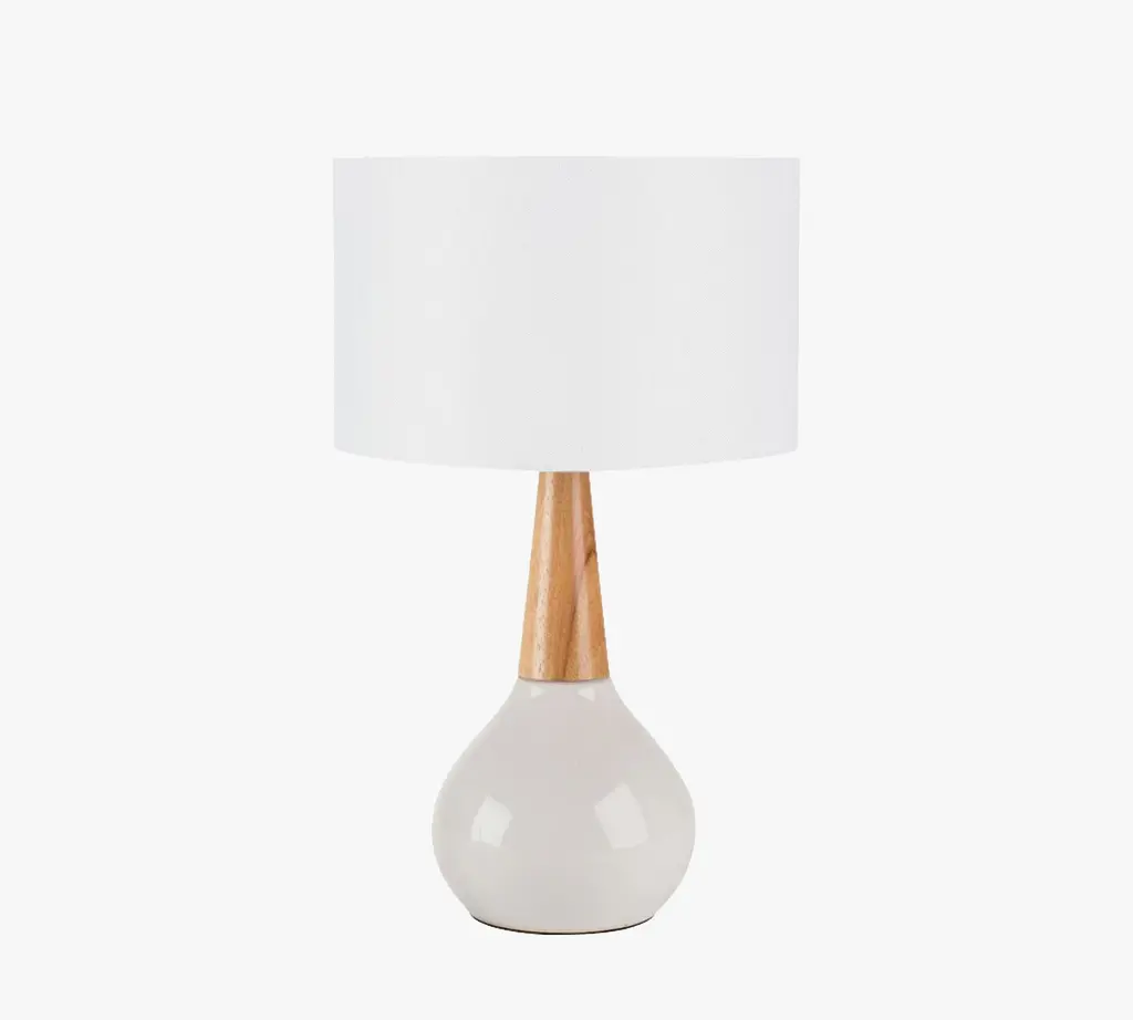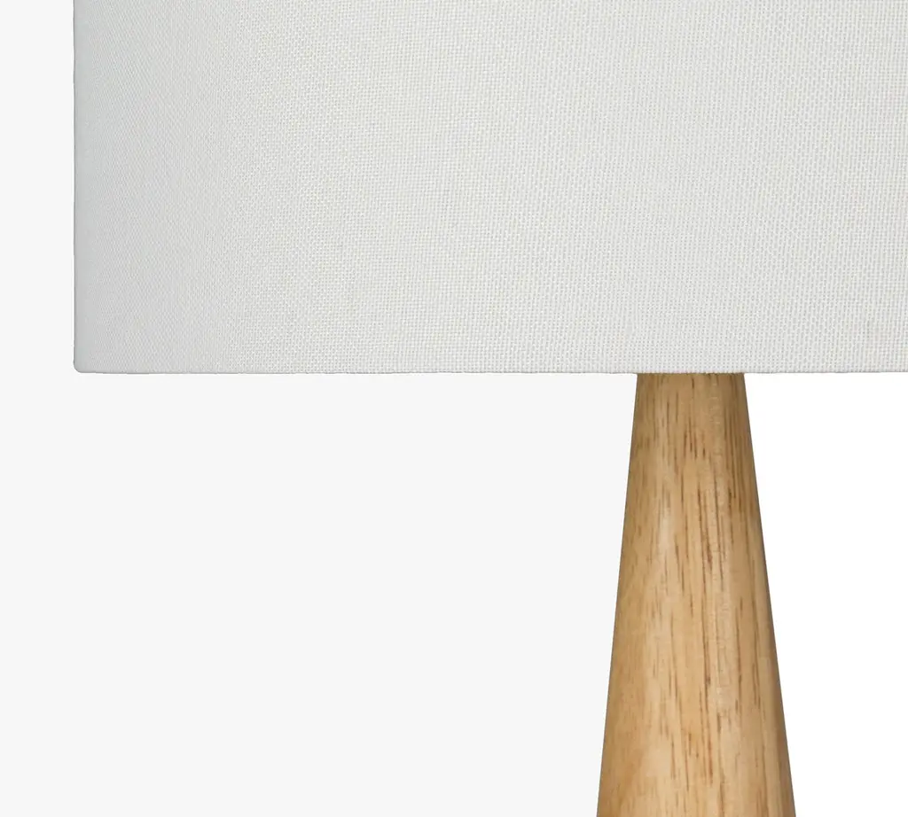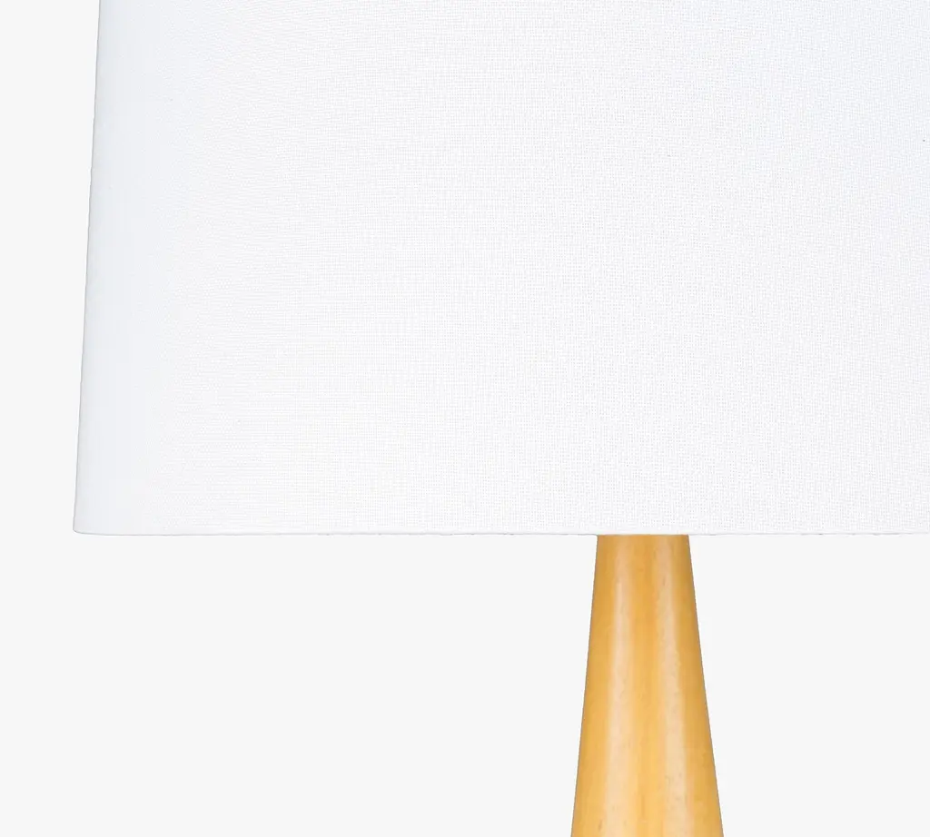 A modern classic, this table lamp features a refined silhouette that suits a range of styles. Anchored in a ceramic base, the tapered wood column rises up to meet a crisp linen shade, the material mix and play of geometric profiles lending visual interest to the understated design. Place on a desktop, side table or nightstand for a stylish contemporary accent.