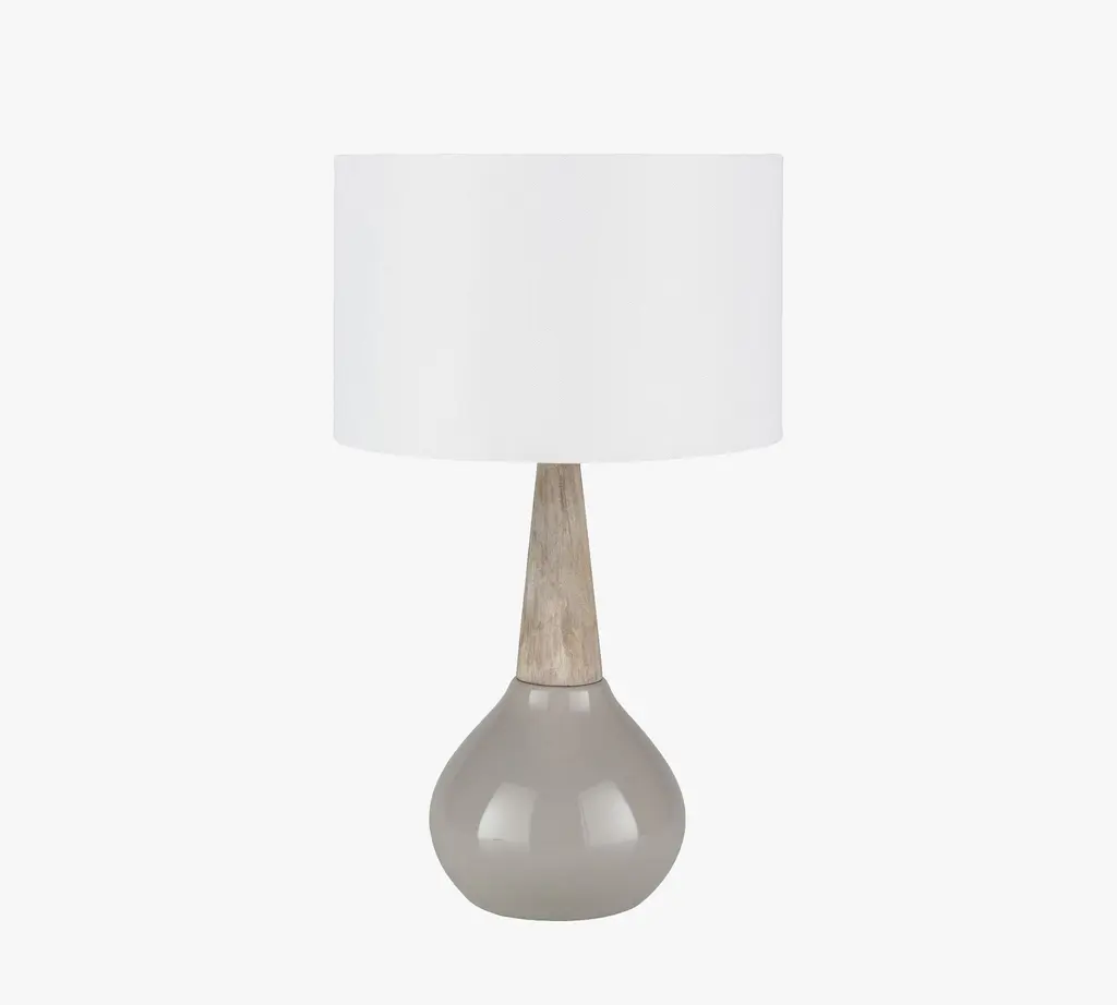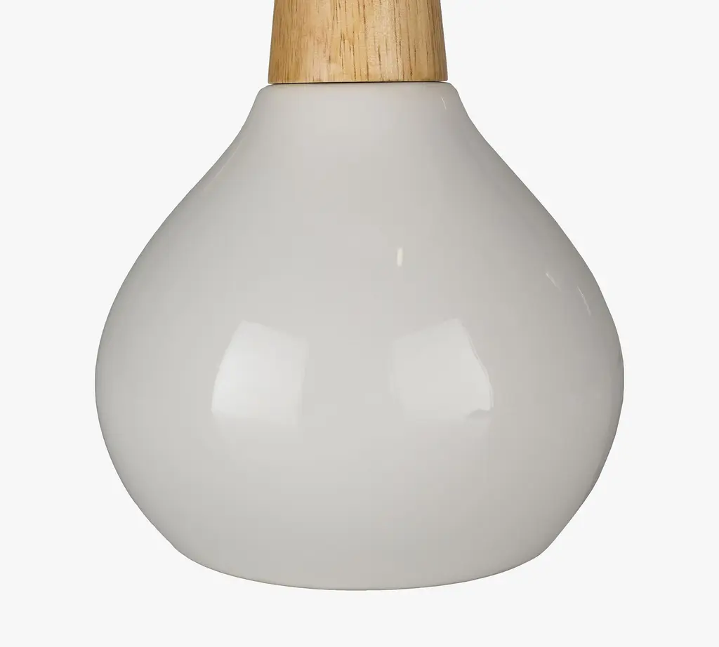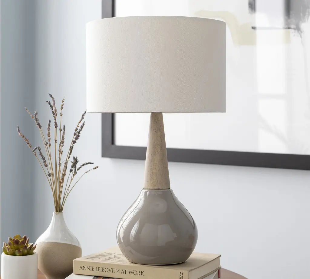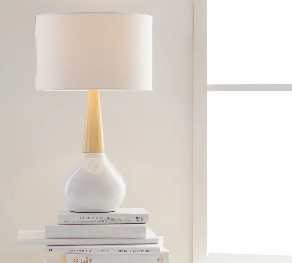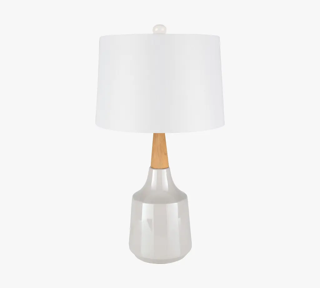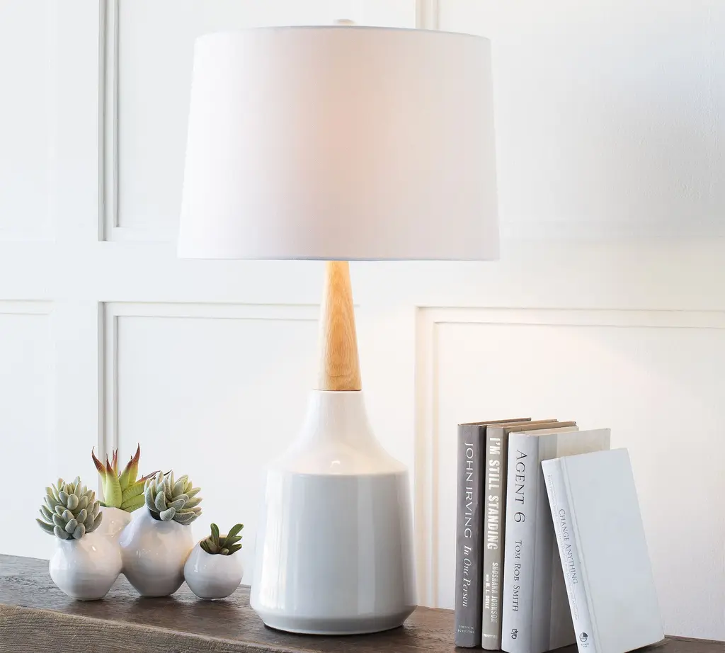 A modern classic, this table lamp features a refined silhouette that suits a range of styles. Anchored in a ceramic base, the tapered wood column rises up to meet a crisp linen shade, the material mix and play of geometric profiles lending visual interest to the understated design. Place on a desktop, side table or nightstand for a stylish contemporary accent.
