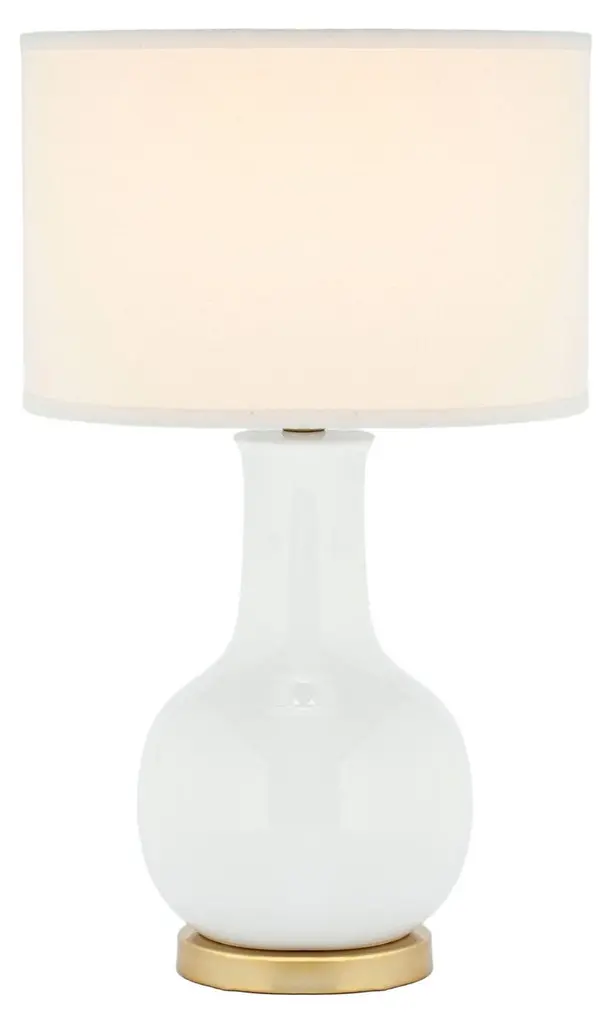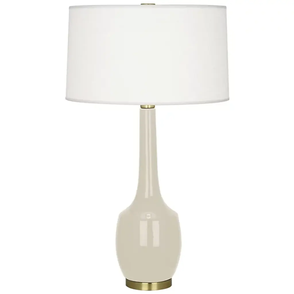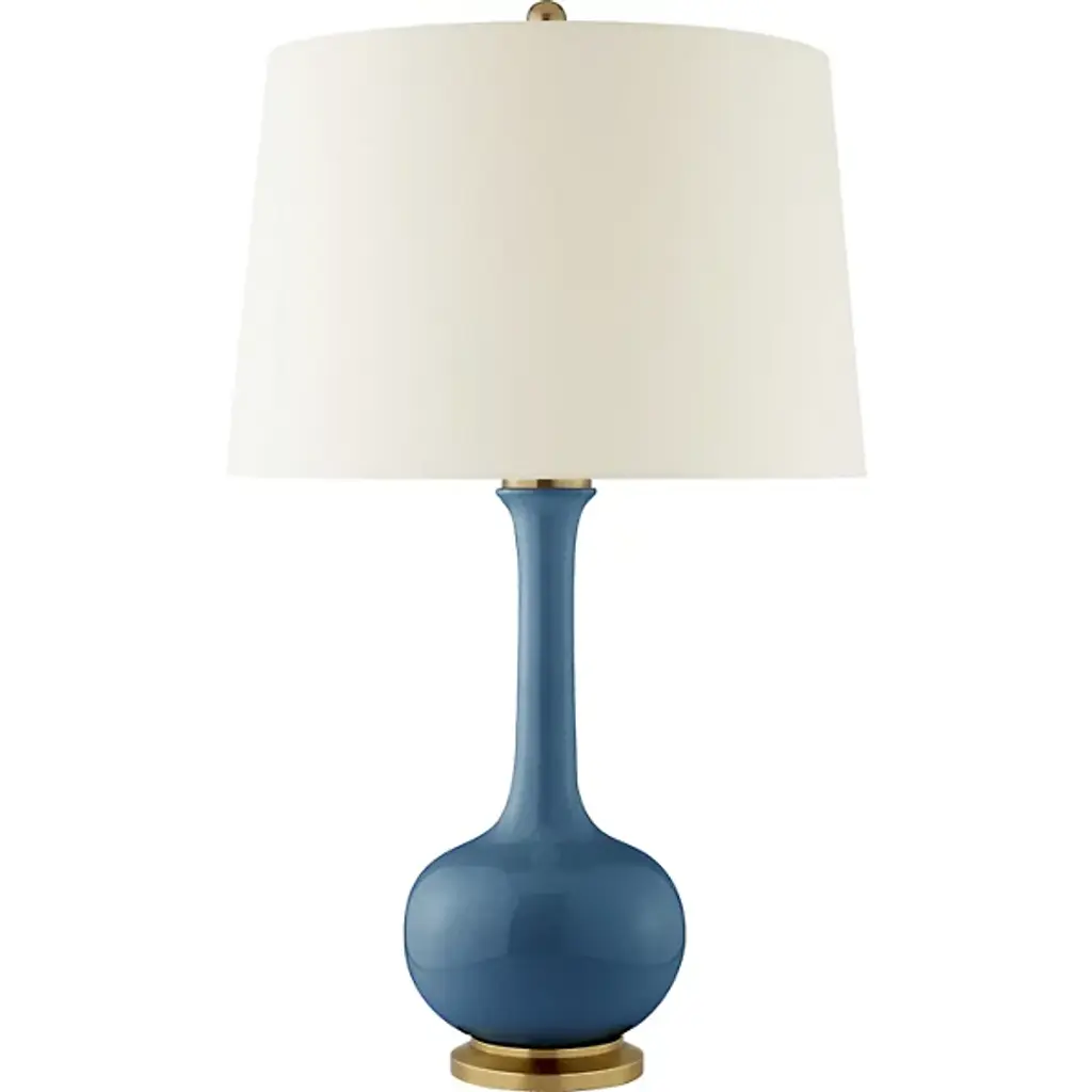 Clever, clean, and playful, the Coy Table Lamp from Visual Comfort Signature, formerly known as Visual Comfort, ascends from a round base, sending up a ceramic vase-style body that narrows from a curving lower segment to a slender stem. A Christopher Spitzmiller design ideal for side tables or alcoves, the ceramic body seats a single strong lamp beneath a flared shade capped by a small sphere finial, adding a final element of continuity that contrasts well with the matte texture of the shade.