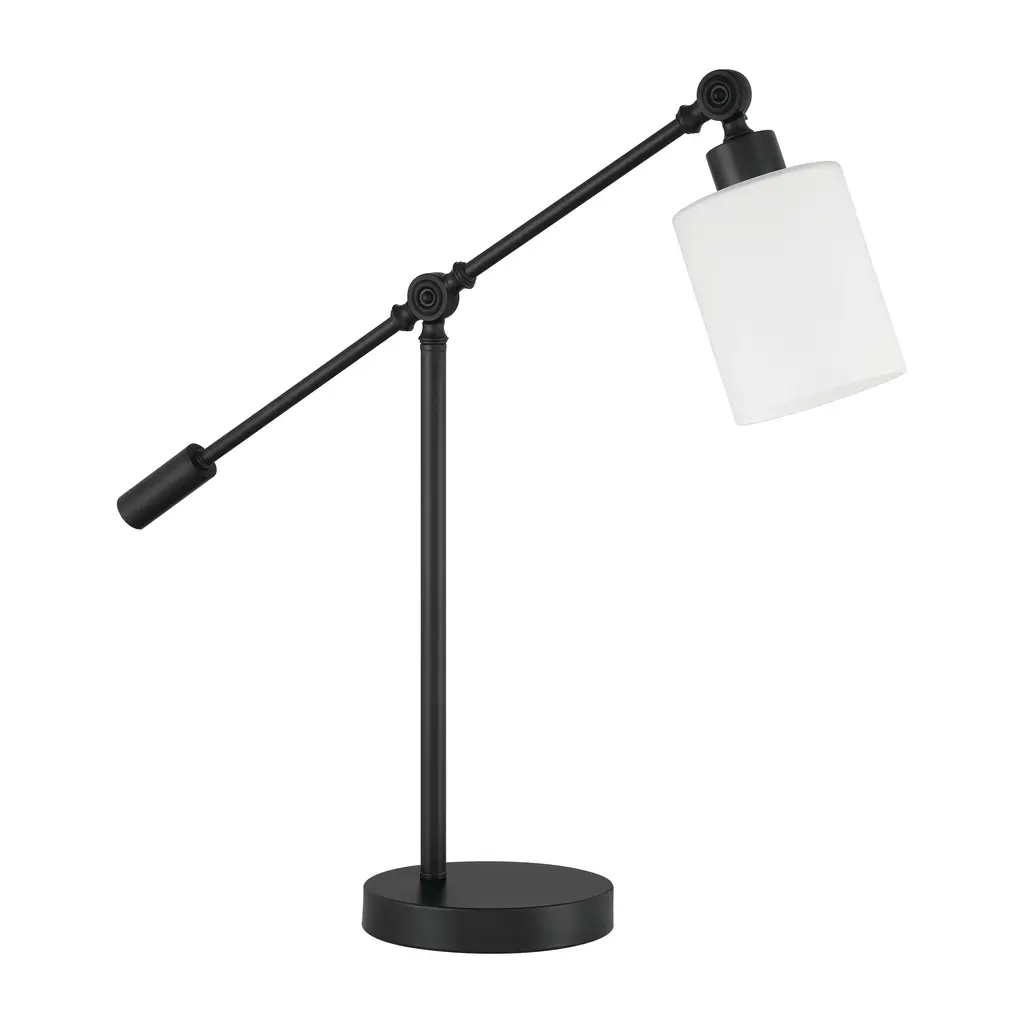 The Craftmade Indiana Desk Lamp is the smart choice! It comes in either Flat Black or Satin Brass finishes. This desk lamp features an adjustable arm, a wide base, and a 60-inch cord, along with a white frosted glass cylinder shade. It requires one medium-base bulb with a maximum wattage of 60W (bulb not included).