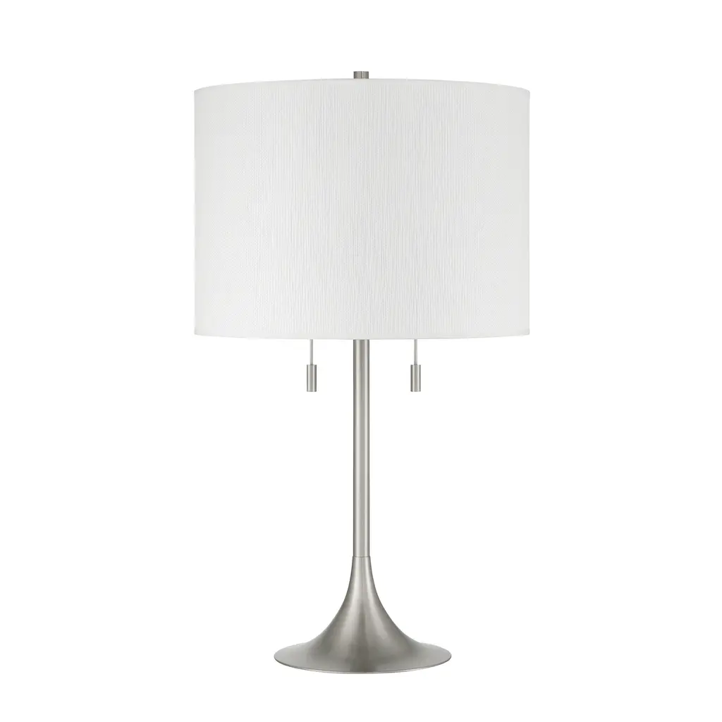 This stunning table lamp is the perfect finishing touch for any room. The Neely Table Lamp from Craftmade comes in your choice of either Brushed Polished Nickel or Satin Brass. The lamp features a large hardback drum shade and has two independent pull chain sockets, allowing for versatile lighting options. Please note that it requires two medium-base bulbs, with a maximum wattage of 60W each (bulbs not included).