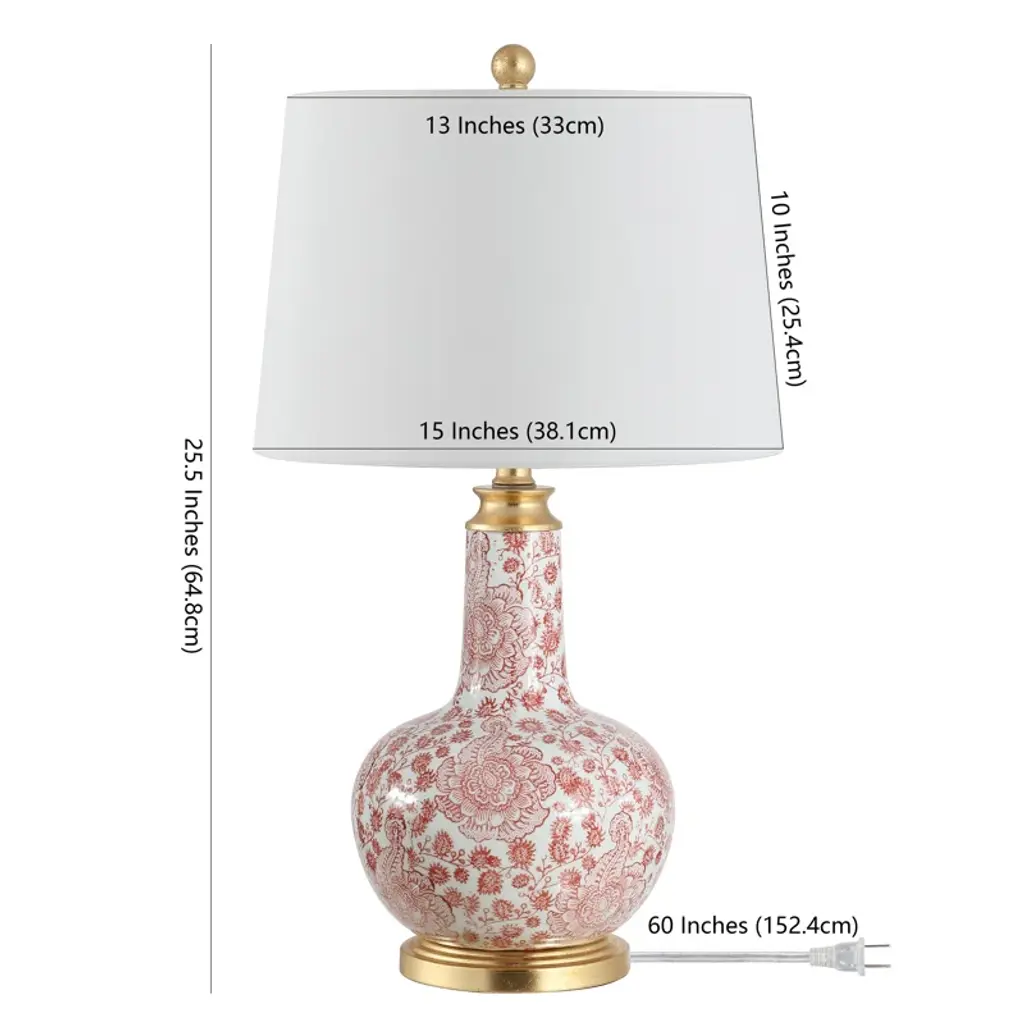 This Craton table lamp provides the definition for today’s classic contemporary decor, beautifully pairing timeless motifs with modern hues and finishes. The delicately painted red rosette pattern on Craton's fabulously upgraded with its sleek gold finished and white tapered drum shade.