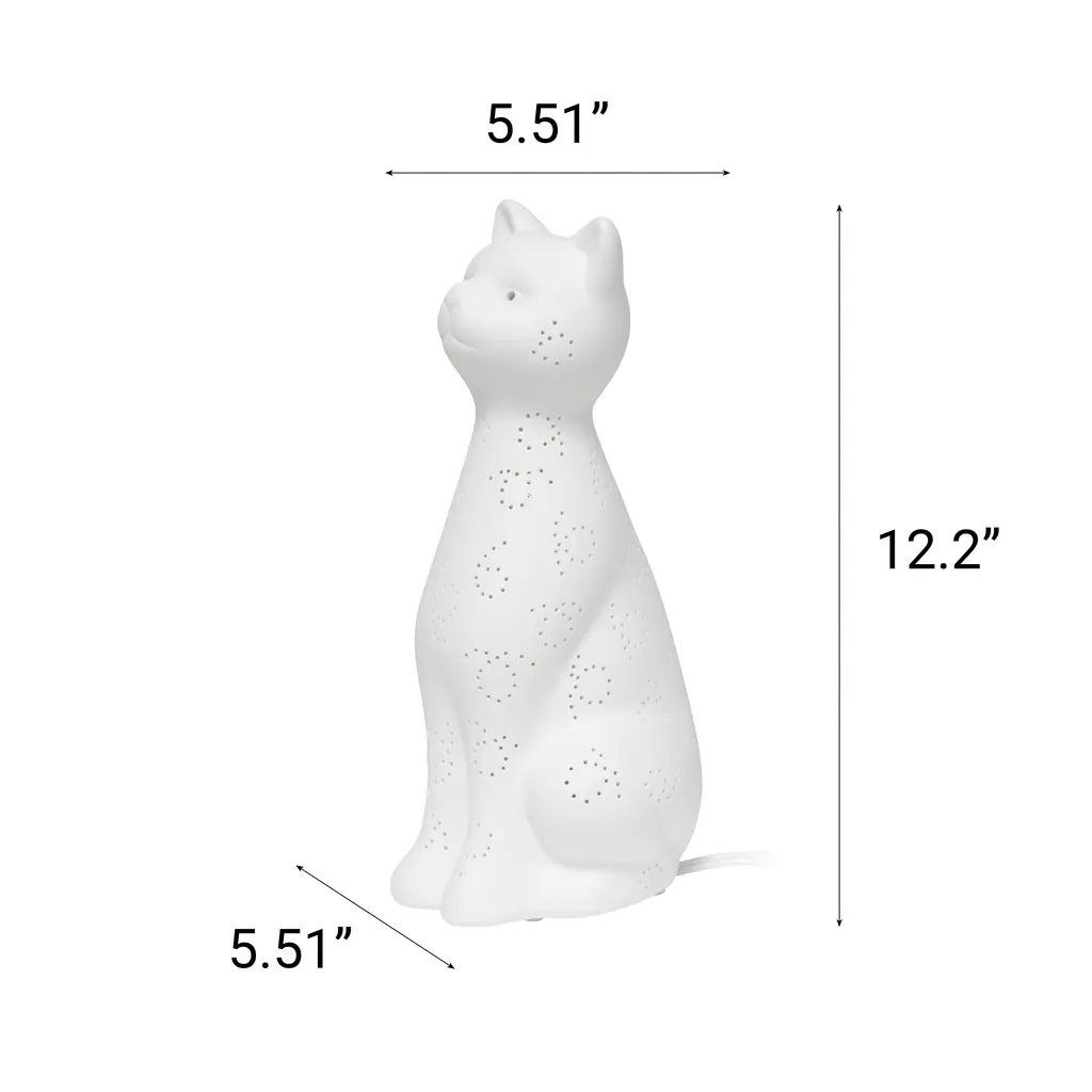Creekwood Home 12.2" Glowing Ceramic Kitty Cat Light, For Home Décor, White - White