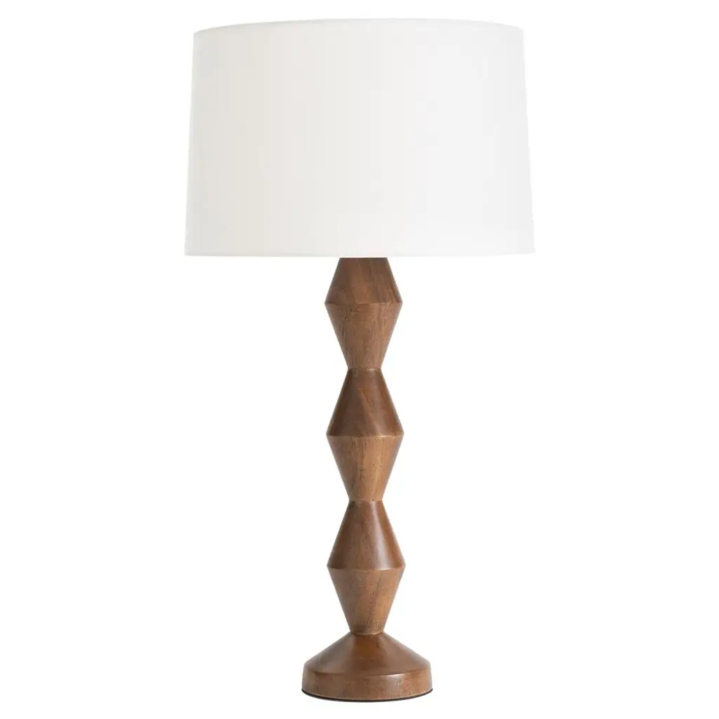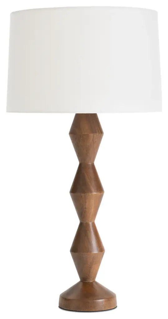 The Crew Walnut Buffet Lamp has a striking geometric walnut base that evokes hand turned details. The fixture is crowned with a Natural Linen shade, making this a stately piece for a wide range of buffet furniture. Crew's wooden finish and overall vibe is distinctly mid-century modern.