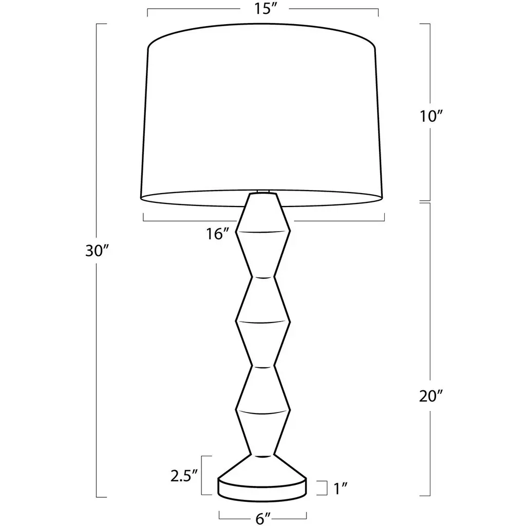 The Crew Travertine Buffet Lamp has a striking geometric travertine base set in neutral tones that evokes hand turned details. The fixture is crowned with an elegant black linen shade with a gold liner, making this a stately piece for a wide range of buffet furniture. Crew's overall vibe is distinctly mid-century modern.