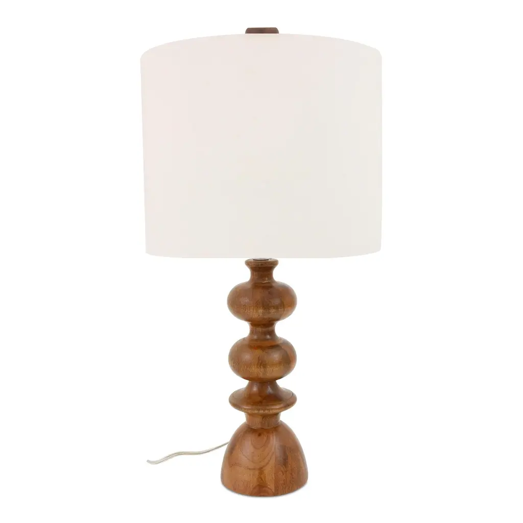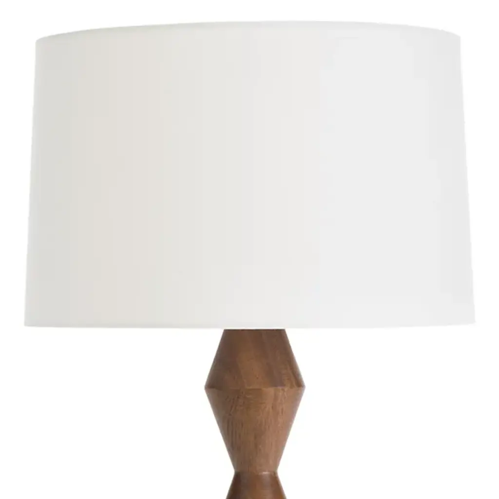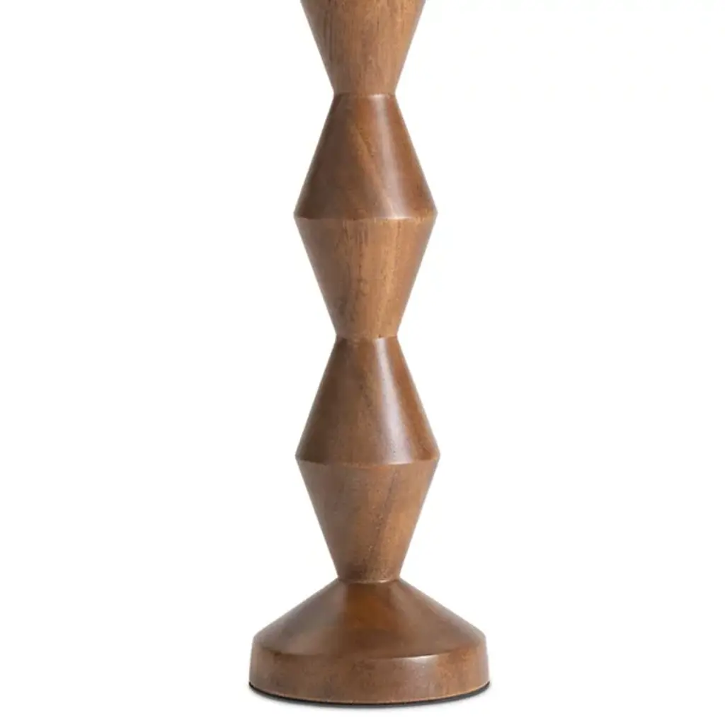 The Crew Walnut Buffet Lamp from Regina Andrew showcases mid-century modern influence with its geometric wooden base. The walnut construction features a series of angled segments, creating an engaging silhouette that draws the eye upward. This lamp balances visual interest with practical lighting and is topped with a simple linen shade. Its taller profile makes it well-suited for buffets, console tables, or any space that could benefit from illumination and a touch of sculptural design.