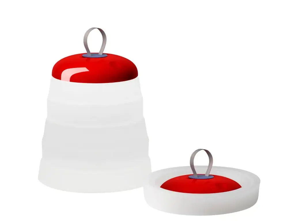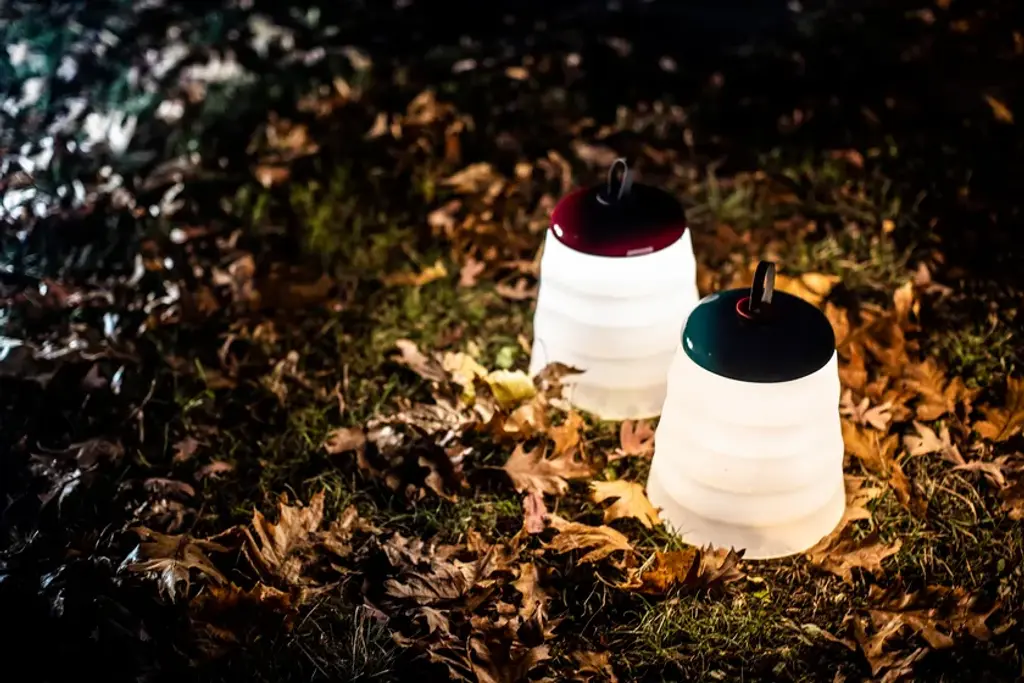 Cri Cri is an outdoor lamp made of silicone, ABS and PMMA.LIGHT SOURCELED included2,4W2700 K 325 lumen CRI>80Integrated touch dimmerIP 65Energy efficiency AAn “easy” cordless lamp with an internal rechargeable battery, to hang or place where desired, both indoors and outdoors. Alone or in a combination, open or regulated at half height, it allows you to create a variety of luminous settings. The brightness can be adjusted to three different levels with a simple touch. When not in use it can be closed, to occupy a minimum of storage space.