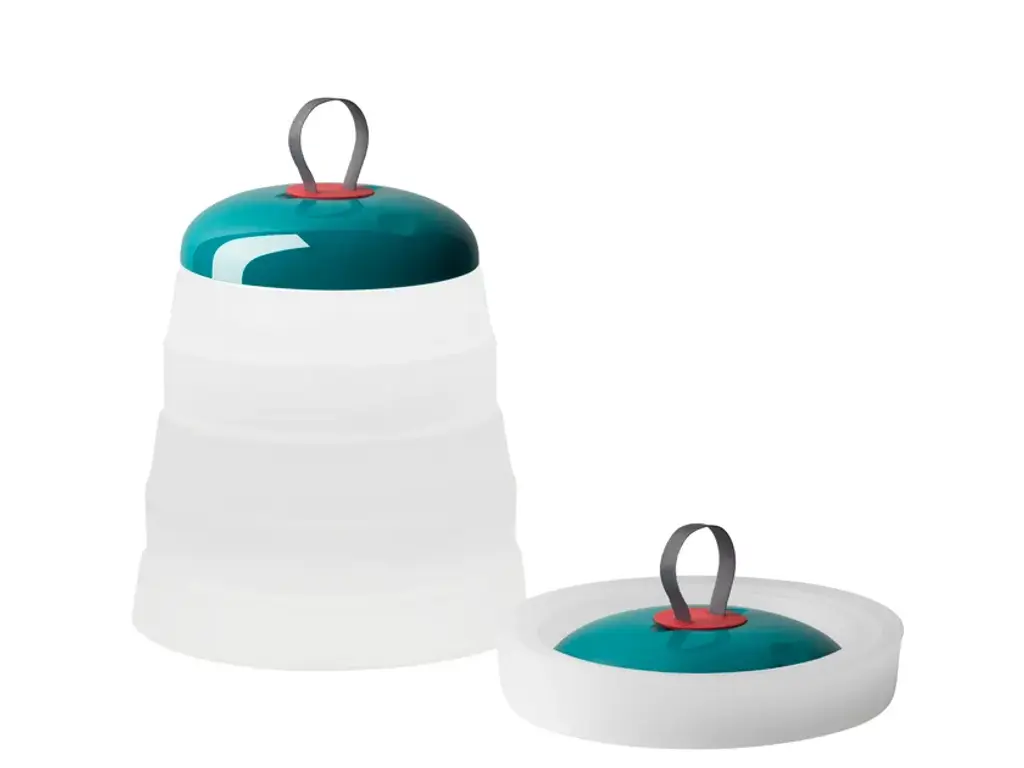 “Cri Cri” borrows its name from the sound of cicadas, and the lamp feels just as easy-going as a summer night spent outdoors. Press the pleated silicone body flat and it folds like an accordion, slipping into a tote with the picnic blanket. Pop it open again and the canvas loop turns into a handle or a quick hanging strap, while the bell-shaped shade settles comfortably on grass, a tabletop, or a tree limb. Hidden in the cap, a 2.4 W LED (2700 K, 325 lm, CRI 80) casts a warm circle of light that you can step through three touch-dimmable levels—bright for board games, low for late-night conversation. A USB-rechargeable battery keeps that glow going for up to ten hours at full power; a complete charge takes roughly nine hours with the included cable. Built for real life, Cri Cri carries an IP67 rating that shrugs off rain showers, pool splashes, and sandy fingers, and the silicone shell stays cool even after hours of use. At just 12 in H × 9.25 in Ø and about one kilo, it’s light enough for kids to tote yet sturdy enough for campsite duty. Choose playful Crimson or deep Sage—each lamp is assembled and tested in Italy before heading out to patios, rooftops, and any place that could use a portable pocket of light.