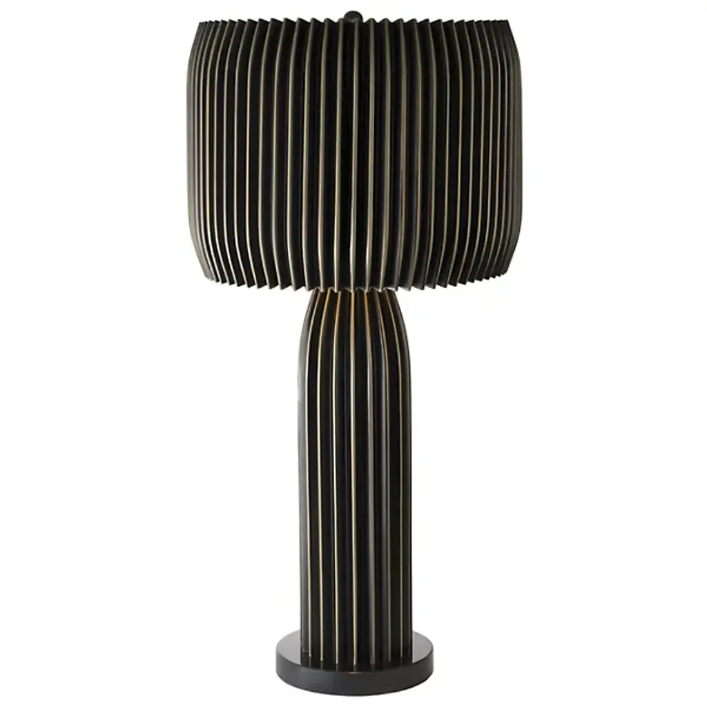 A striking hand-crimped steel base and matching shade give the Crimp Lamp its unique three-dimensional character. Available in both an antique nickel (as shown) and warm bronze finish, the piece is grounded by a granite base that adds depth and complements the delicate, geometric creases. From a fashion forward perspective, Global Views offers accessories, furniture, statement lighting, and an assortment of rugs and mirrors to add beauty and joy to your home.