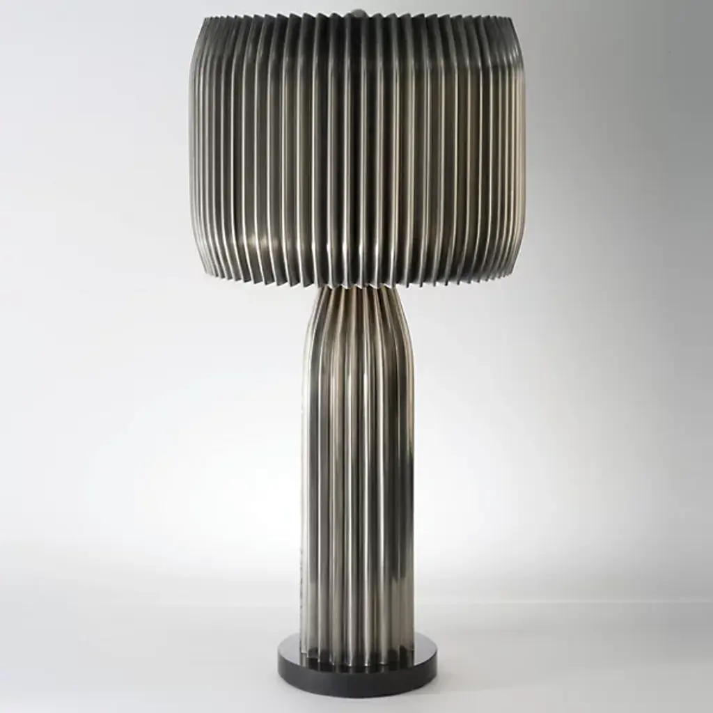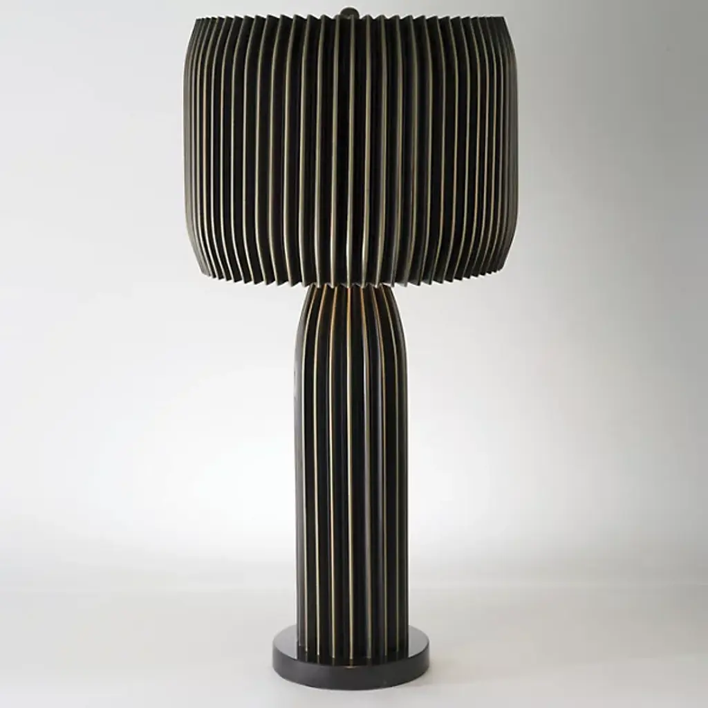 With a stunning hand-crimped design, the Crimp Table Lamp by Global Views brings both visual depth and a unique illuminative effect to your interior setting. When on, its delicately creased metal shade funnels light directly downwards (along its equally creased body) for a focused, glare-free lighting effect. The fixture is anchored by a granite base, which adds much needed stability while complementing the distinct style.