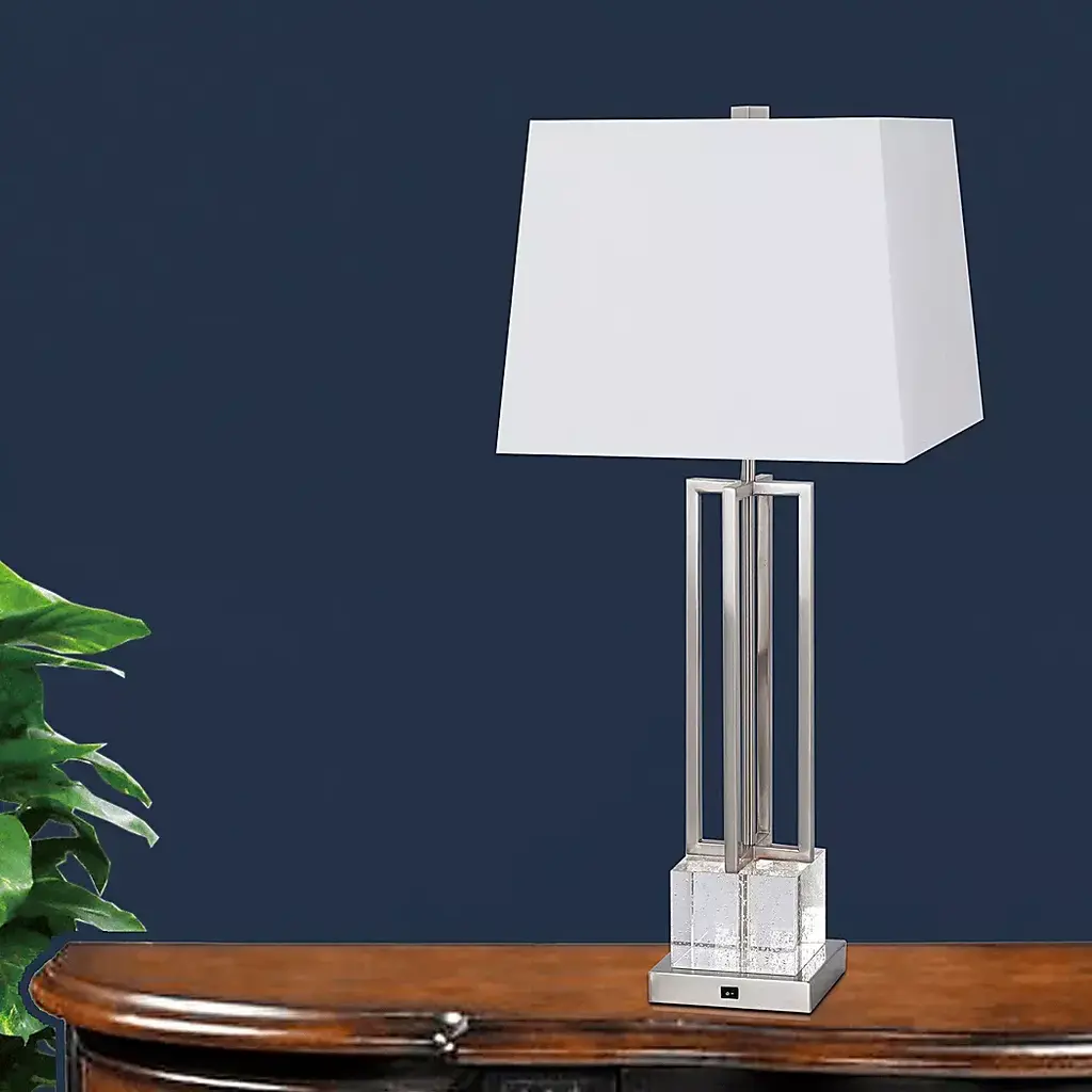 An epitome of modern elegance, the Crystal Falls table lamp will surely bring style to your space. Rectangle cutouts create a chic design to linger in your memory and add visual interest to the room. This lamp includes a 3-way switch that allows you to adjust the brightness according to your needs and takes up to a 100 watt bulb (not included).