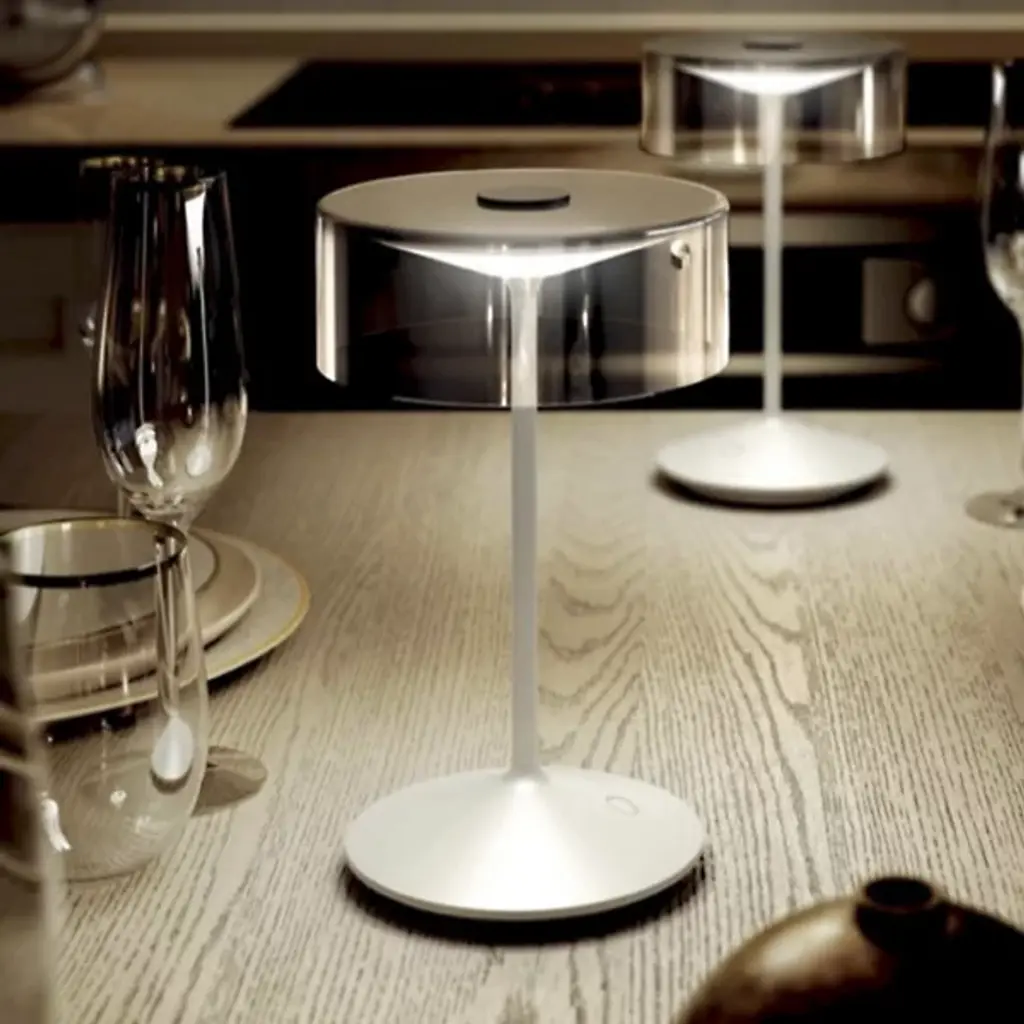 The Crystal Rechargeable LED Table Lamp from Zafferano America is a sleek, battery-operated, and rechargeable portable table lamp that combines functionality with modern design. It features intuitive touch control for easy dimming and allows you to select your preferred color temperature, making it ideal for creating the perfect ambiance. It is crafted from die-cast aluminum with a tinted glass shade. Compact and versatile, this lamp is perfect for indoor and outdoor use, offering a convenient lighting solution wherever needed.