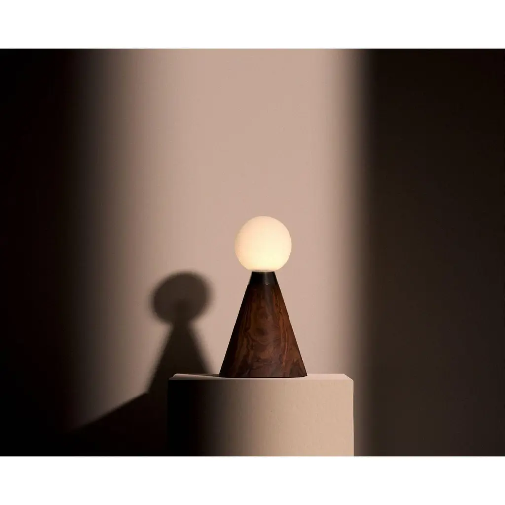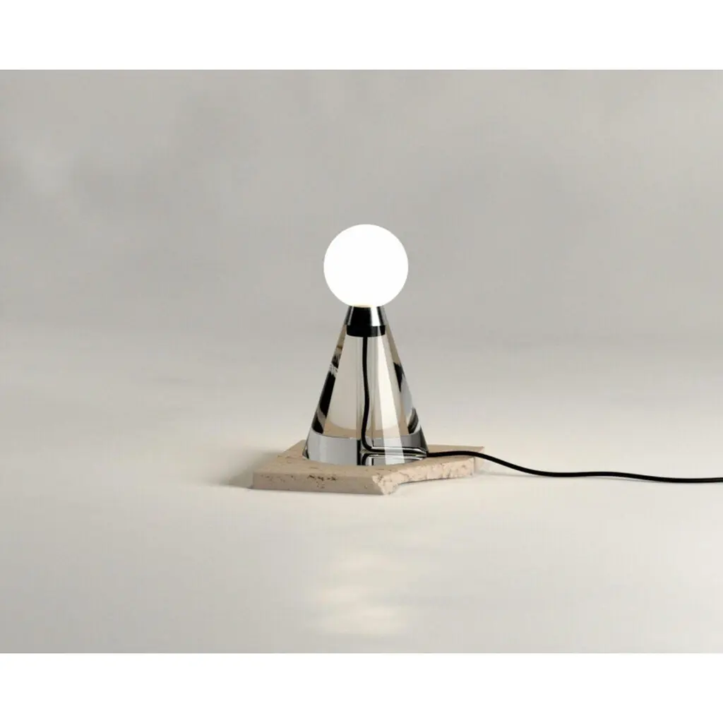 Crystal Resin Mercurio lamp by Siete Studio.Dimensions: D20 x W20 x H36 cm.Materials: Crystal Resin, hand-blown glass.Mercurio is a sculptural table lamp characterized by its balanced geometric form and simplistic appearance. The base references totemic elements, it elevates and transitions into the hand-blown glass sphere which resembles an astronomical analogy of the planet Mercury. All our lamps can be wired according to each country. If sold to the USA it will be wired for the USA for instance. Please contact us.Please note as this product is handmade, colors and dimensions may vary to those shown in images.Siete is a design studio based in Mexico and Australia, founded in 2020 by Gerardo Córdova, Alexa Fernández and Diego Escobedo. Committed to creating not only appealing and engineered furniture, but also taking products from being delightful to functional, and then beyond that— to be meaningful. We wish not only to ful fill pragmatic needs but also idealistic and intangible needs. Our creative process approach comes from an abstract realm enriched with layers of space, conceptual experiences, geometry, materials, and structural interpretation.