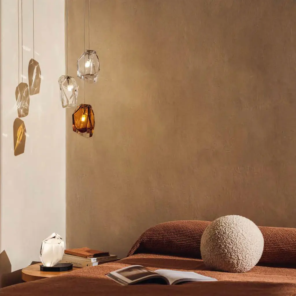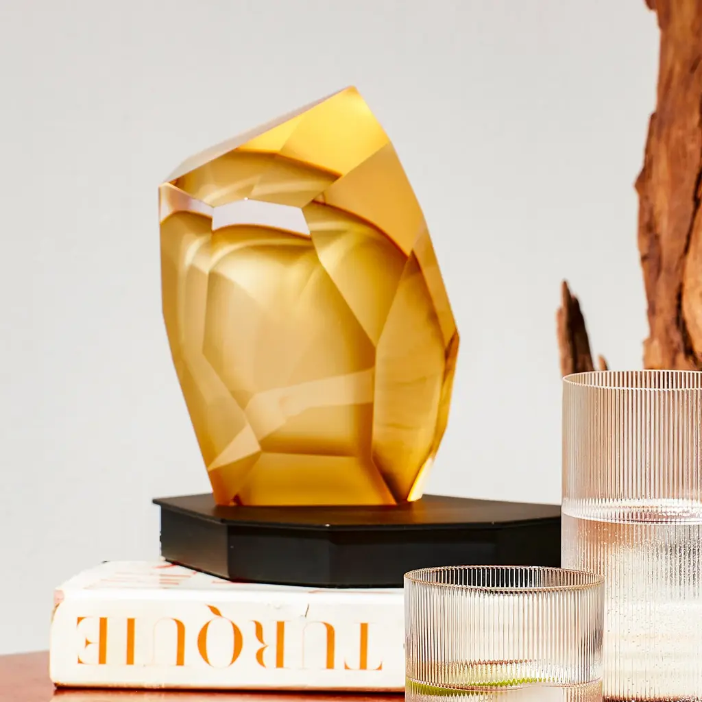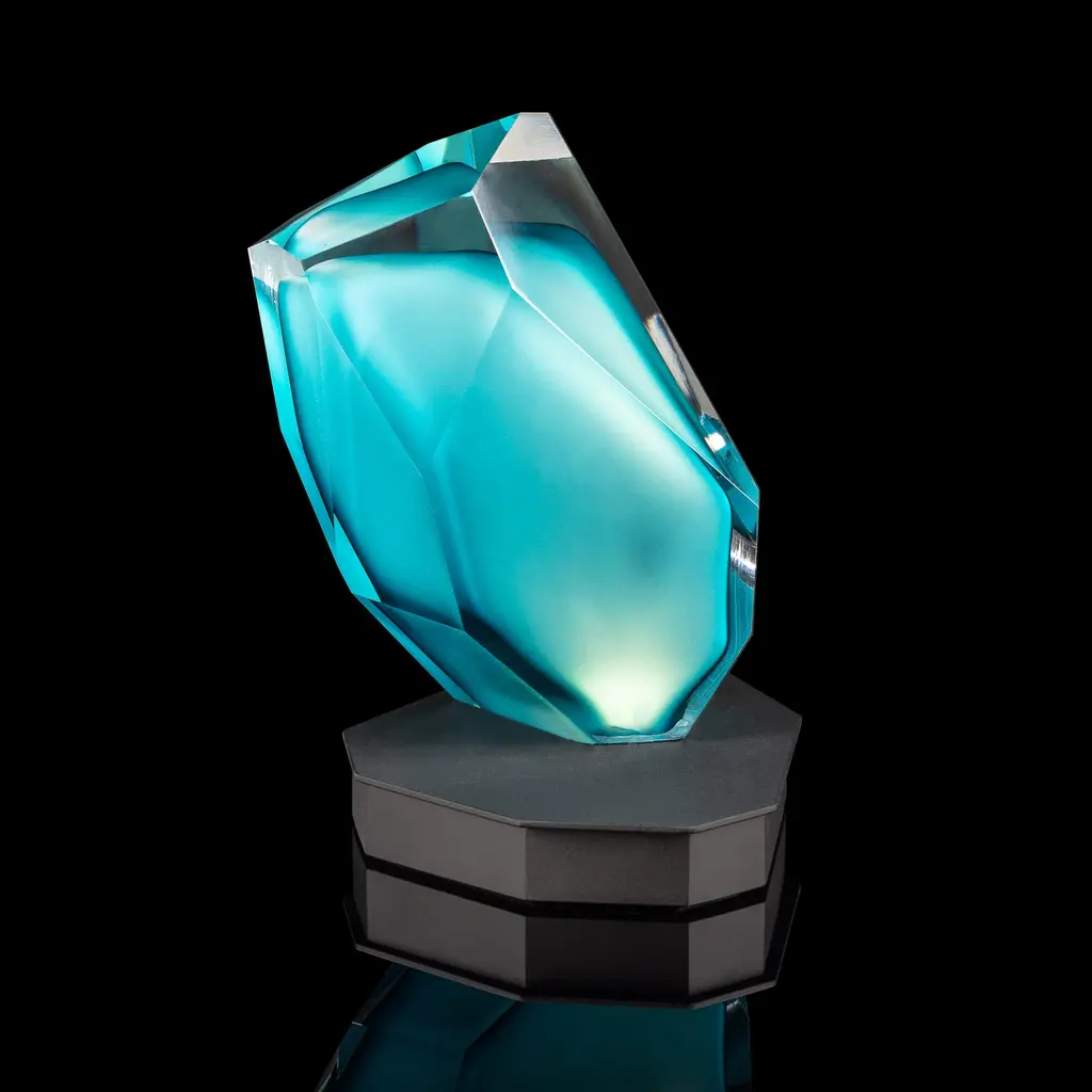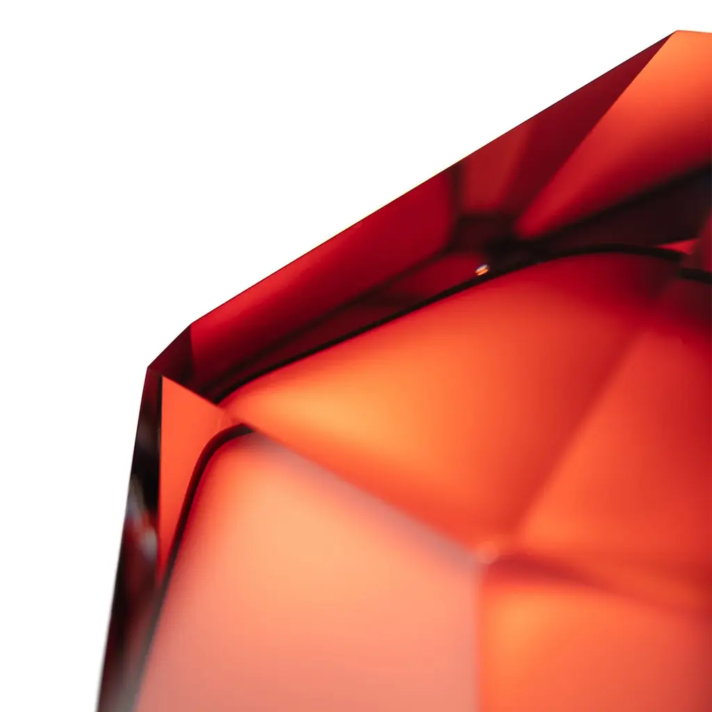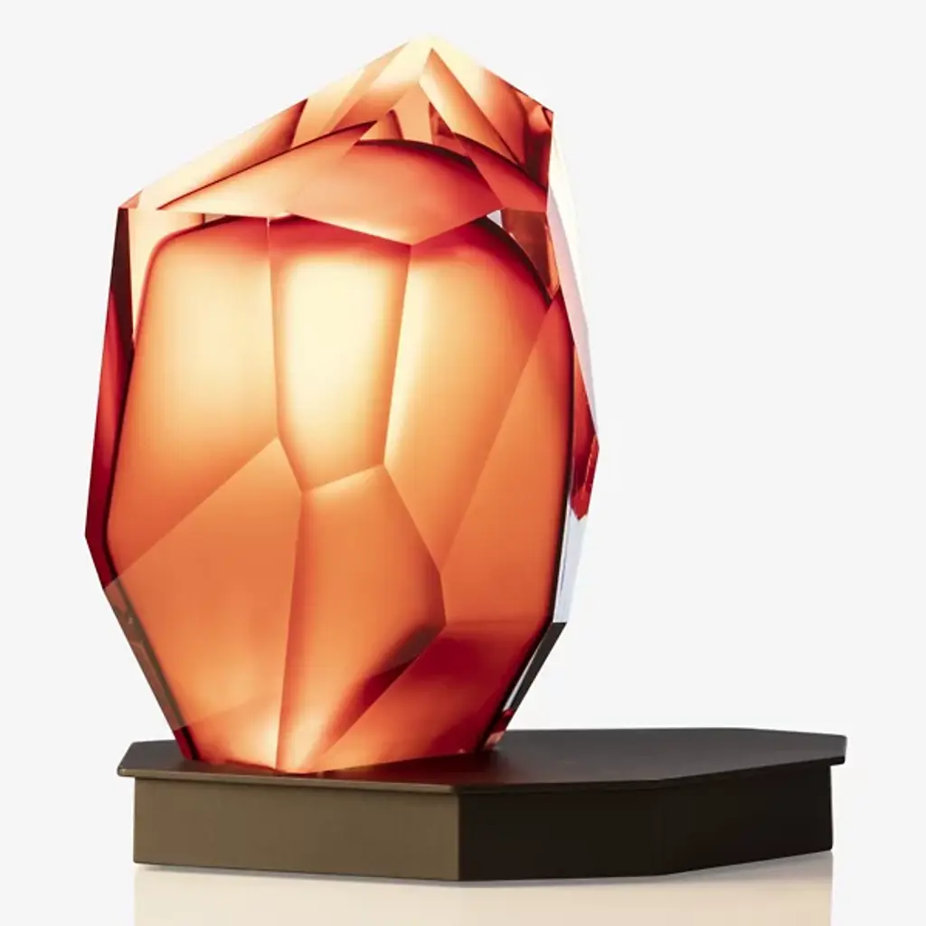 A sculptural piece of light for any surface, the Crystal Rock Portable Table Lamp from Lasvit is a versatile design by Arik Levy. This cordless, rechargeable lamp features a hand-blown glass shade crafted to resemble a rough-hewn crystal. Its precisely cut facets create a dynamic play of reflections, casting a captivating glow whether lit or unlit. A fusion of raw, geological beauty and modern technology, it's a piece of functional art for the contemporary home. Highlights: