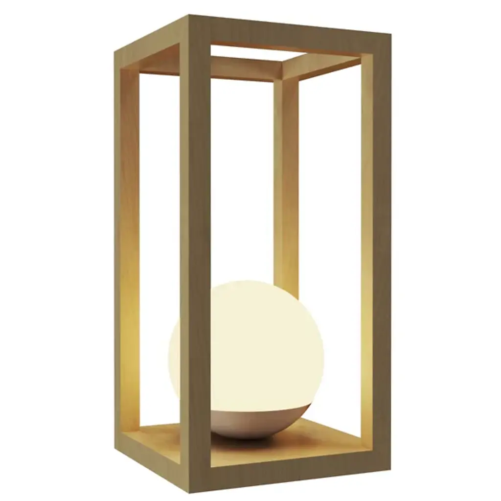 The Cubic Table Lamp by Accord Lighting is a wooden, decorative luminaire with a contemporary, timeless design. Proudly made in Brazil, this fixture uses high-end technology, placing a brilliant LED inside of a glass globe. This globe is neatly surrounded by a linear frame that takes on the shape of a prism.