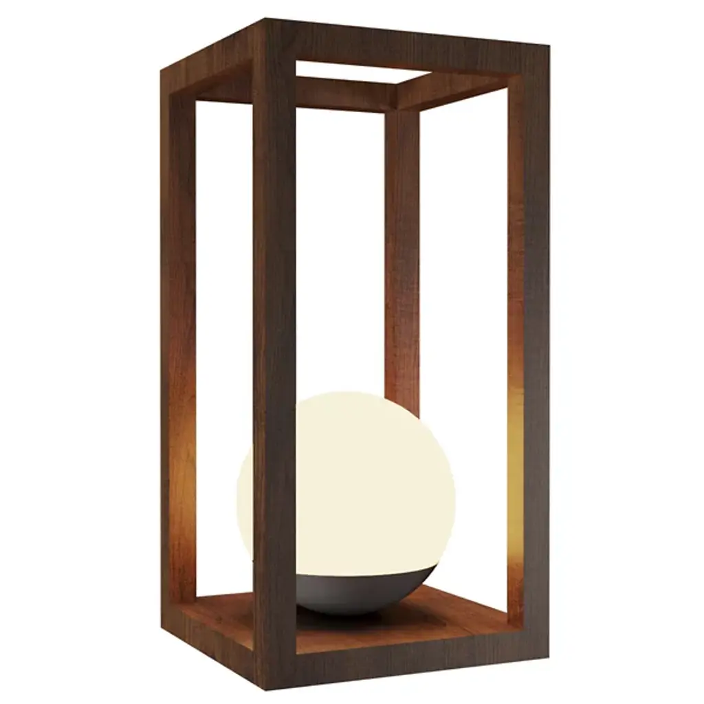 The Cubic Table Lamp by Accord Lighting is a wooden, decorative luminaire with a contemporary, timeless design. Proudly made in Brazil, this fixture uses high-end technology, placing a brilliant LED inside of a glass globe. This globe is neatly surrounded by a linear frame that takes on the shape of a prism.