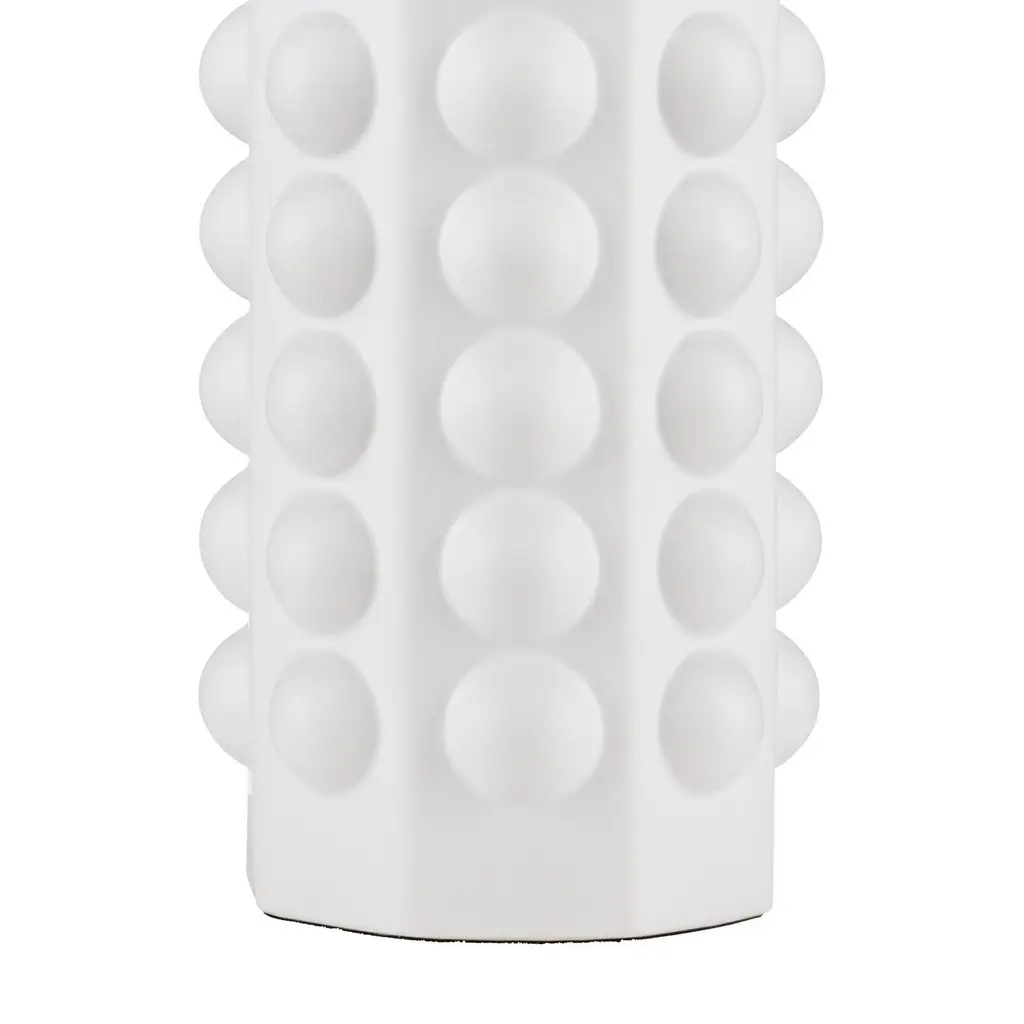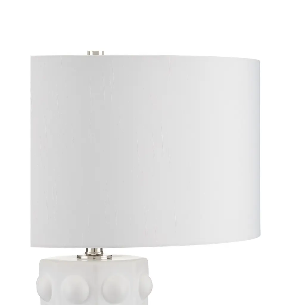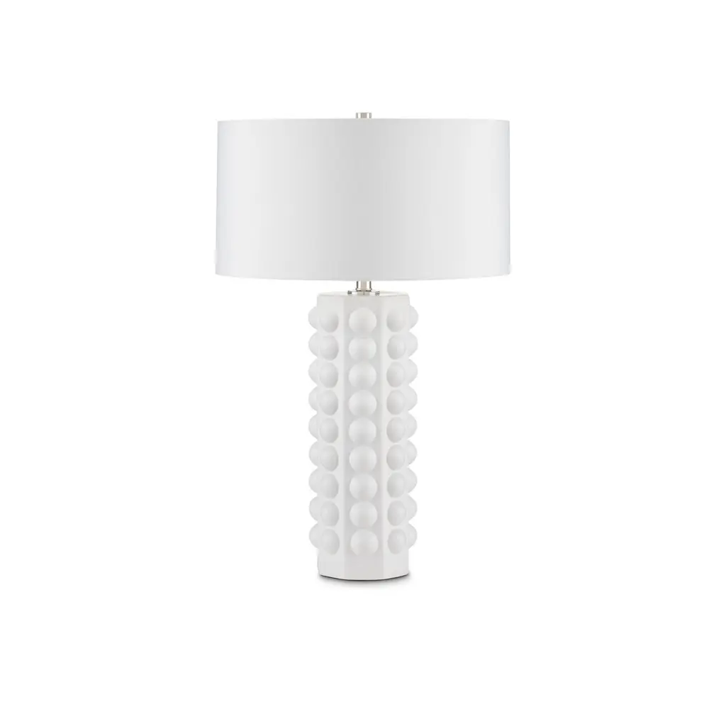 Made of ceramic in a matte white finish, the Cassandra White Table Lamp has a kicky vibe that is one part swinging seventies and one part contemporary. The Cassandra has a knobby profile that will add depth to its spot in a room. Fitted with a off-white shantung drum shade, this composition has heft and scale to spare.