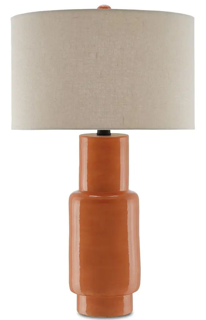 The Janeen Orange Table Lamp is a terracotta lamp in a vibrant orange. The metal hardware has a satin black finish, and the Janeen is topped with a flax linen drum shade that illuminates this orange lamp, a nod to kicky pottery of the past. We also offer the Janeen in white. Wipe with a lint-free clean cloth.