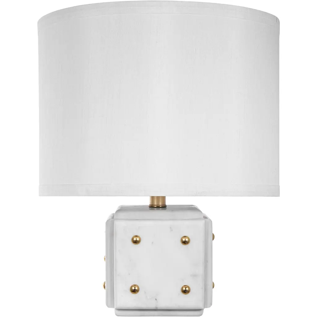 The Meraki Mother-of-Pearl Table Lamp was designed by Pam Bailey and Christina Pomroy to be a luminous element in a room. The brilliance of the mother-of-pearl columnar body will bring sheen to a space even when the lights are switched off. Each piece of the natural material is cut and hand-applied, and the white lamp has a textural feel because the thickness of the shell varies from piece to piece. The gold finish on the metal teases out the warmer tones in the material and the off-white shantung shade echoes the pale swaths of the shell.