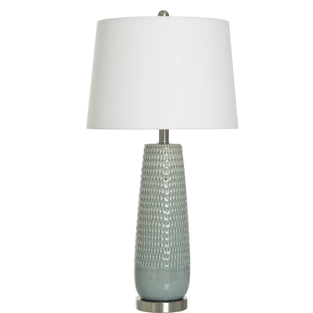 The Cymbals Table Lamp is hand painted with a reactive glaze that leaves a high gloss finish with a variegated ombre effect. The changes in tone and contrast between light and dark give this base subtle interest and give it a pop of pastel color.