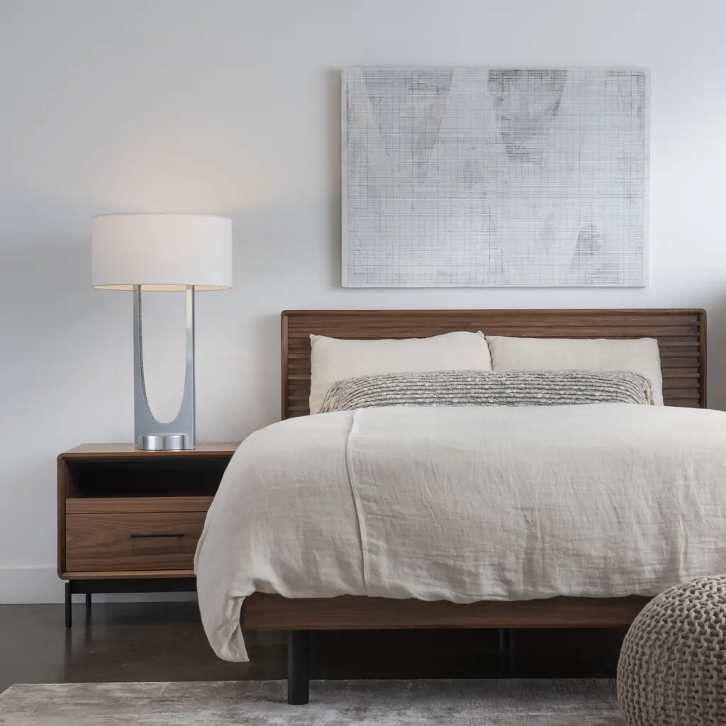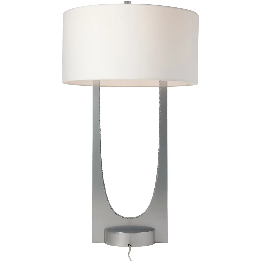 The Cypress Table Lamp was inspired by a single curved pencil sketch. This lamp embraces the interplay between dark and light through its unique design. In a nod to its namesake Cypress tree’s iconic bark, the lamp’s rough-textured inner edges reflect the light, and contrast beautifully with the sleekness of its U-shaped body. Two-tone look available, with the base in the same or a contrasting accent finish.