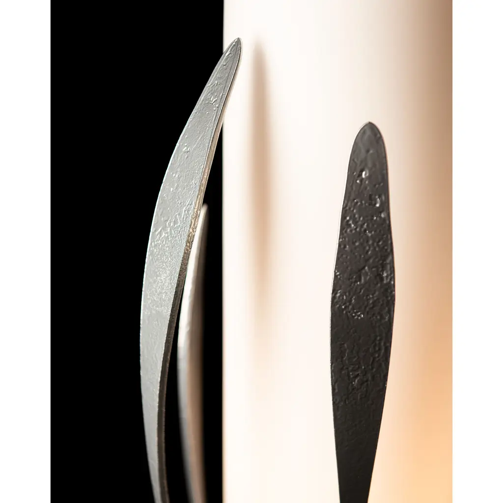 A vertical lamp with a small footprint, the Dahlia Cylindrical Table Lamp by HF designer Paul Marr Hilliard boasts a beautiful translucent frosted opal glass cylinder that shades the light within, surrounded by hand-forged "petals" made by Vermont artisans.