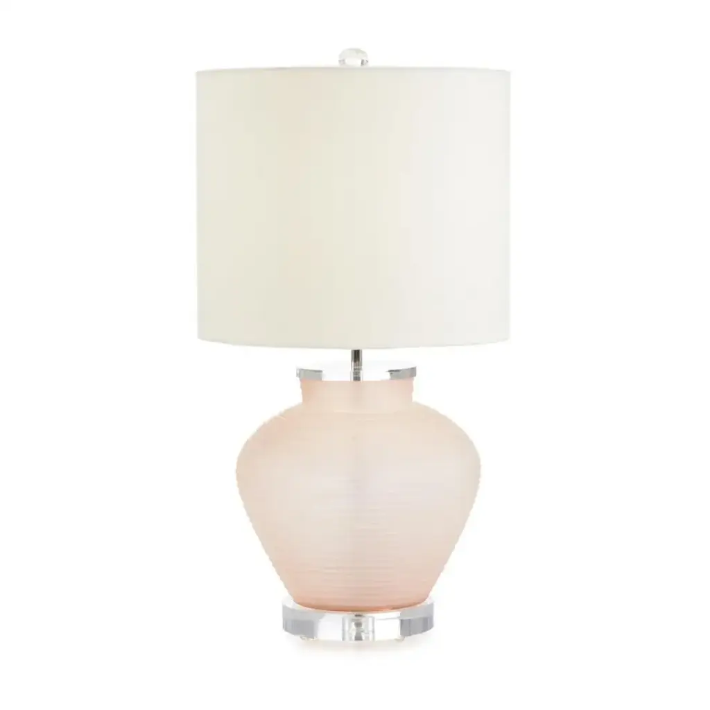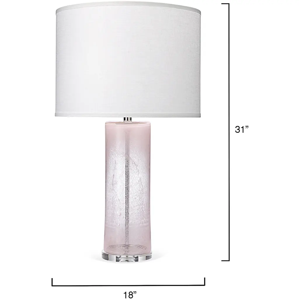 Delicate points of color condense and disperse within this glass lamp creating a Monet-like diffusion of pastel pink.