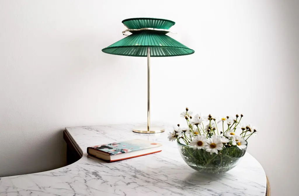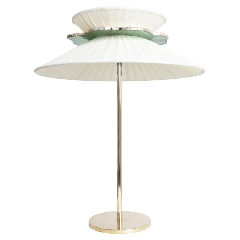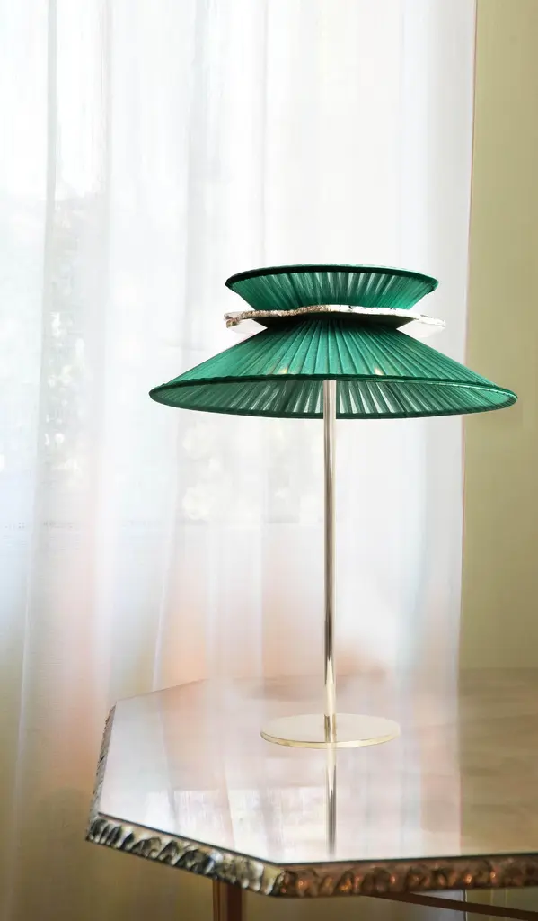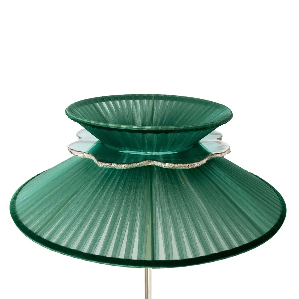 Daisy Contemporary Table Lamp 44 Emerald Silk Glass Silvered Necklace, Brass