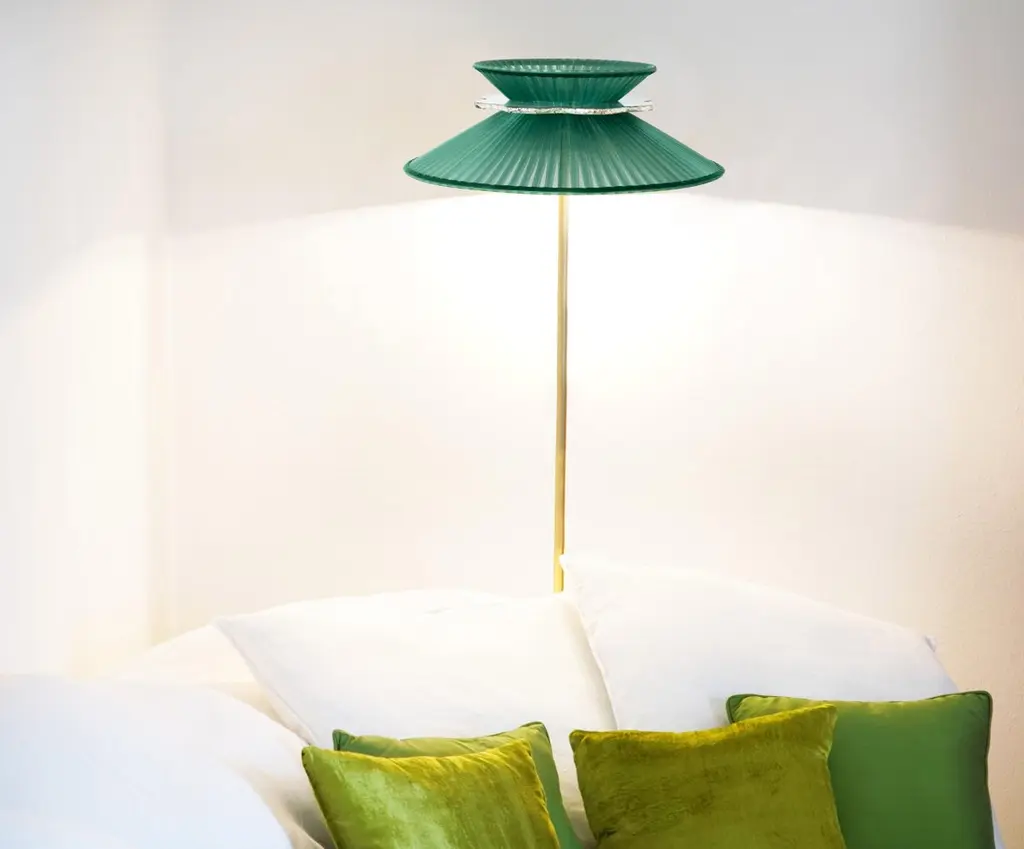 DAISY The Contemporary-Renaissance LadyFor more than 22 years we have been committed to offering you unique collections in terms of design and quality. Using an ancestral manufacturing silvering method, all our iconic items are handmade crafted in our atelier in Tuscany, Italy.Celebrate your extraordinary love story with the one that captures your dream come true, Daisy, the blossomed flower, a contemporary-Renaissance lady, adorned by a bright four-leaf necklace. The scintillating glass clover seemingly floats upon the wrapped silks for emphasizing the astonishing beauty of each individual silver edge. A landscape bursting with most vibrant hues and blooms.CE certified and Electrified: US, EU, UK , dimmableAvailable in the lampshade diameter: 44 and 60 cm