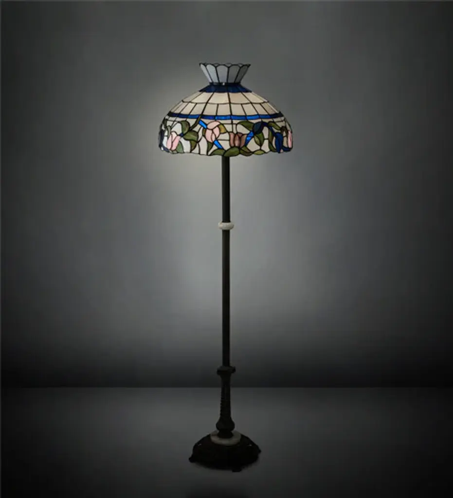 The Dale Tiffany TA24001 Poelking Swan Tiffany Accent Lamp is a captivating piece that combines both elegance and artistry. Standing 23 inches tall, the lamp features a lighted base controlled by a 4-way switch with dark brown finish base intricately designed in the shape of a graceful swan, its wings spread in a beautiful display. The handcrafted shade, resembling a blooming flower, adds a delicate touch to the overall design. The lamp's curved stem seamlessly connects the base and the shade, enhancing its sophisticated look. This accent lamp not only provides a warm and inviting glow but also serves as a striking decorative piece that adds charm and elegance to any space.