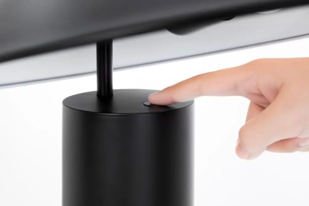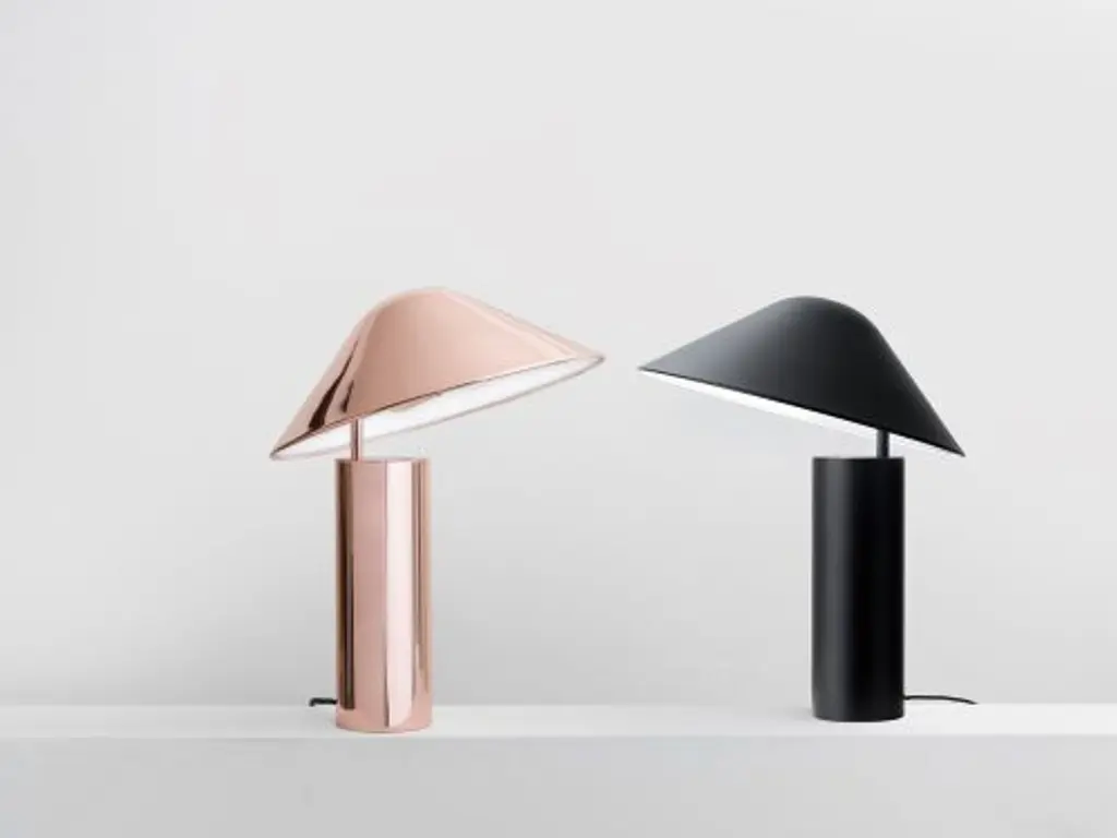 The Damo Table Lamp is named after a legendary Buddhist monk who spent nine years in solitude in a quest to reach enlightenment. The design is powerful in its simplicity, paying homage to an inspiring figure from the past by using geometric inspired forms and minimalism. A cylinder acts as a base and holds the integrated on-off button. The upper section has a cone shape and smooth top; as it is flexible, it can be moved downward or upwards, revealing two lighting bulbs underneath. Elegant and modern, this table lamp will look perfectly at home in a chic bedroom or a modern living room. The Damo Table Lamp is made by Seed Design from durable steel and comes in two color options: gleaming copper and matte black.