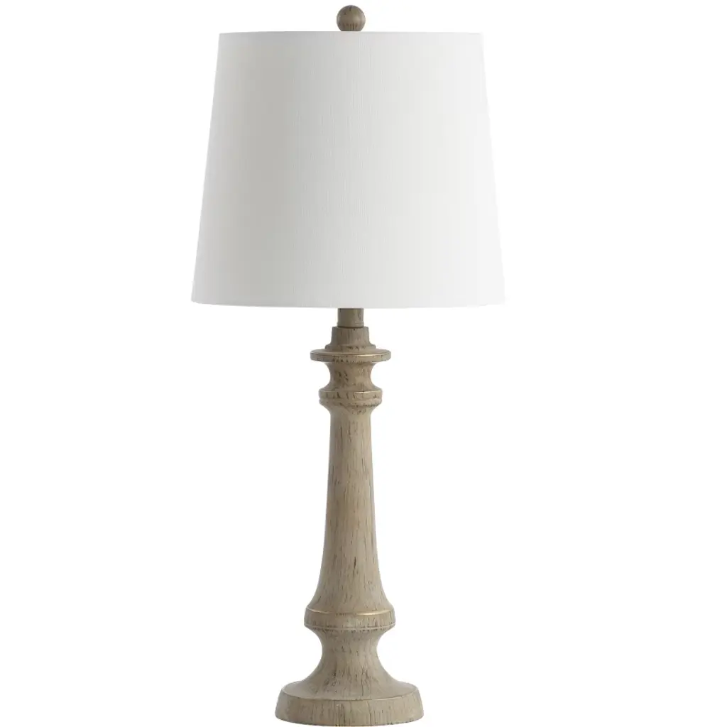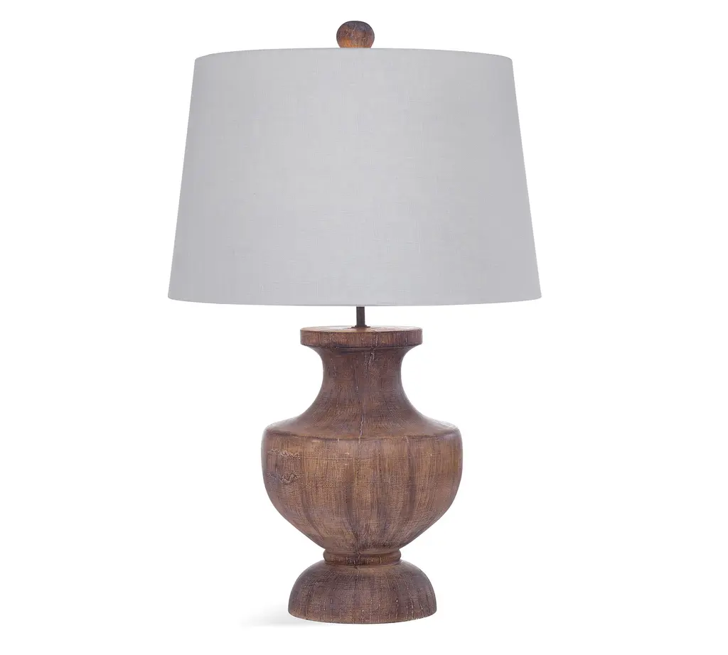 With its wood, urn shaped body and distressed grey finish, the Dana Table Lamp is the ideal lighting option for transitional style.