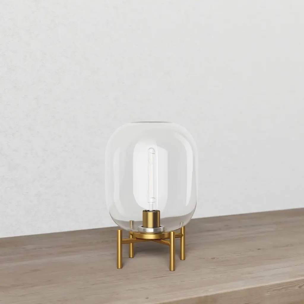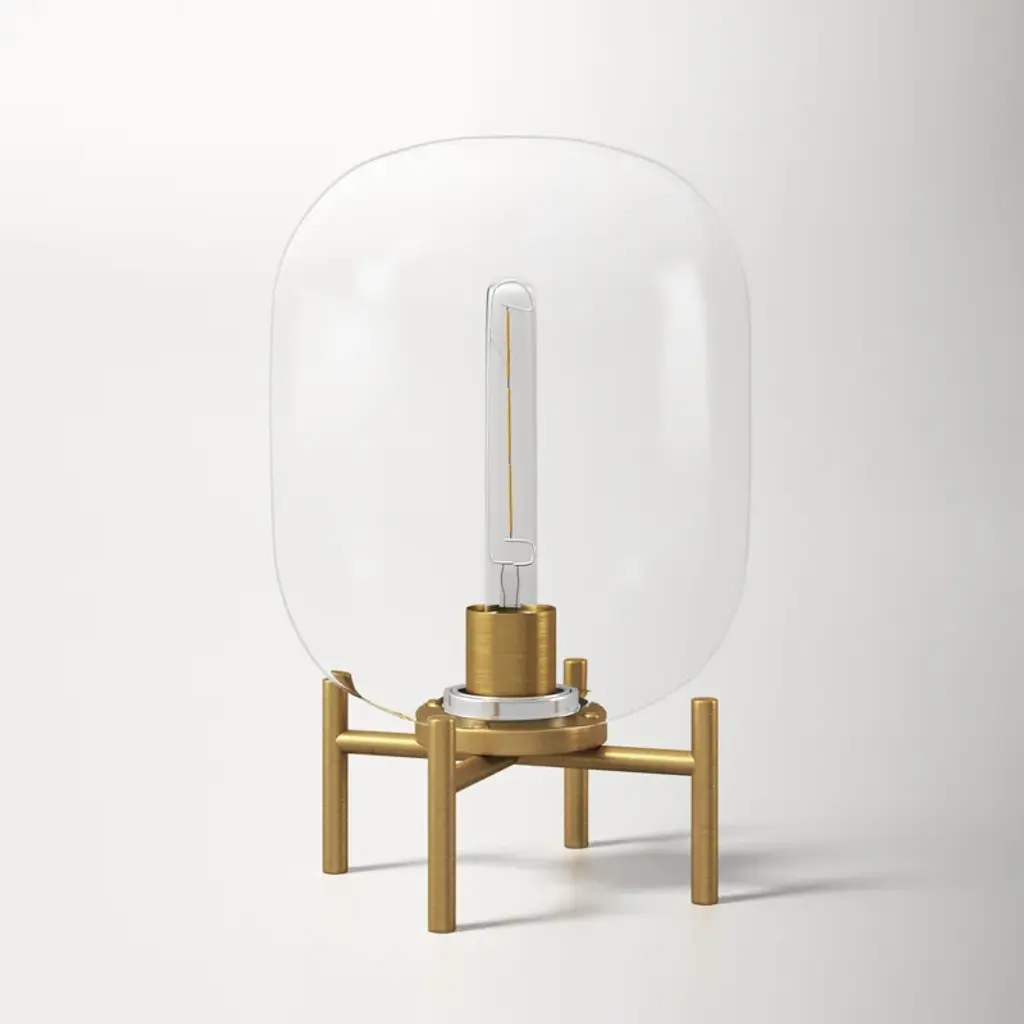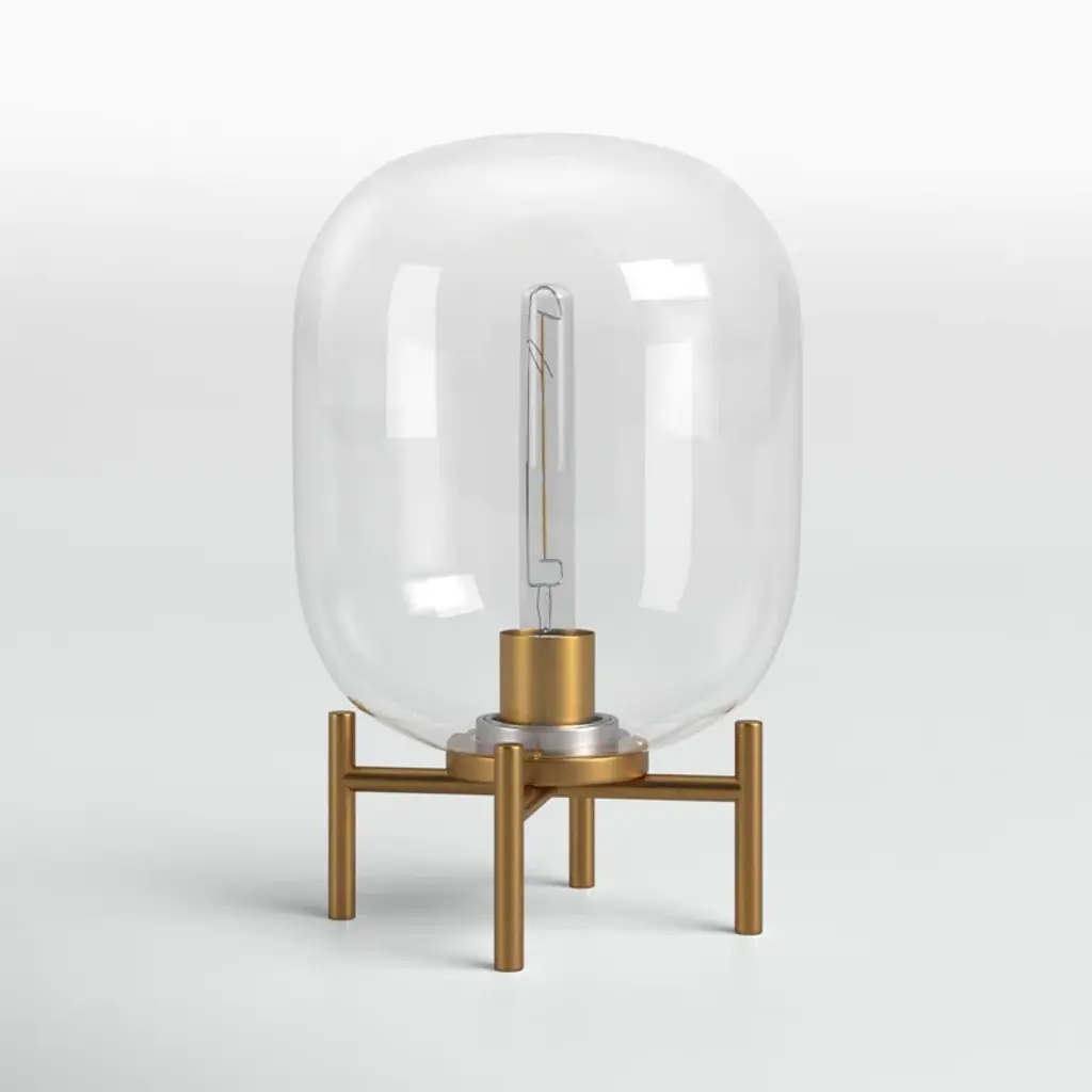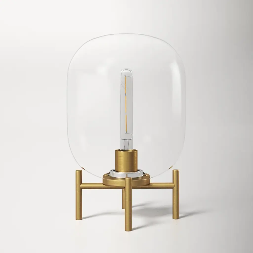 Oversized style, little package – this petite table lamp is ready to brighten your home without taking up too much surface area. It features a clear glass dome shade that rests on a four-legged metal base with a neutral finish for a vintage vibe with a retro feel. This fixture accommodates a single 60 W bulb (not included) and is powered by a switch. And since it measures just 15'' H x 10'' W x 10'' D, you can easily add it to a nightstand, desk, or end table.