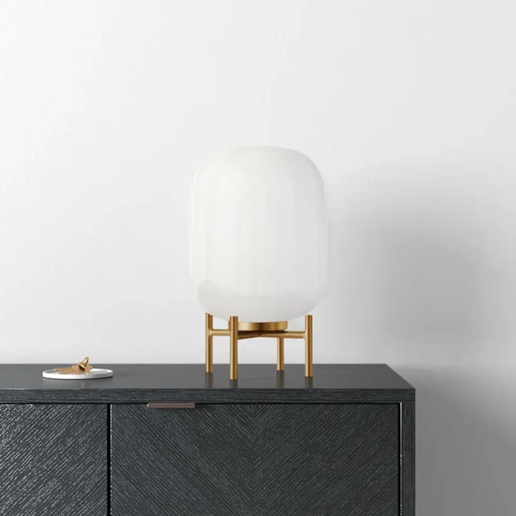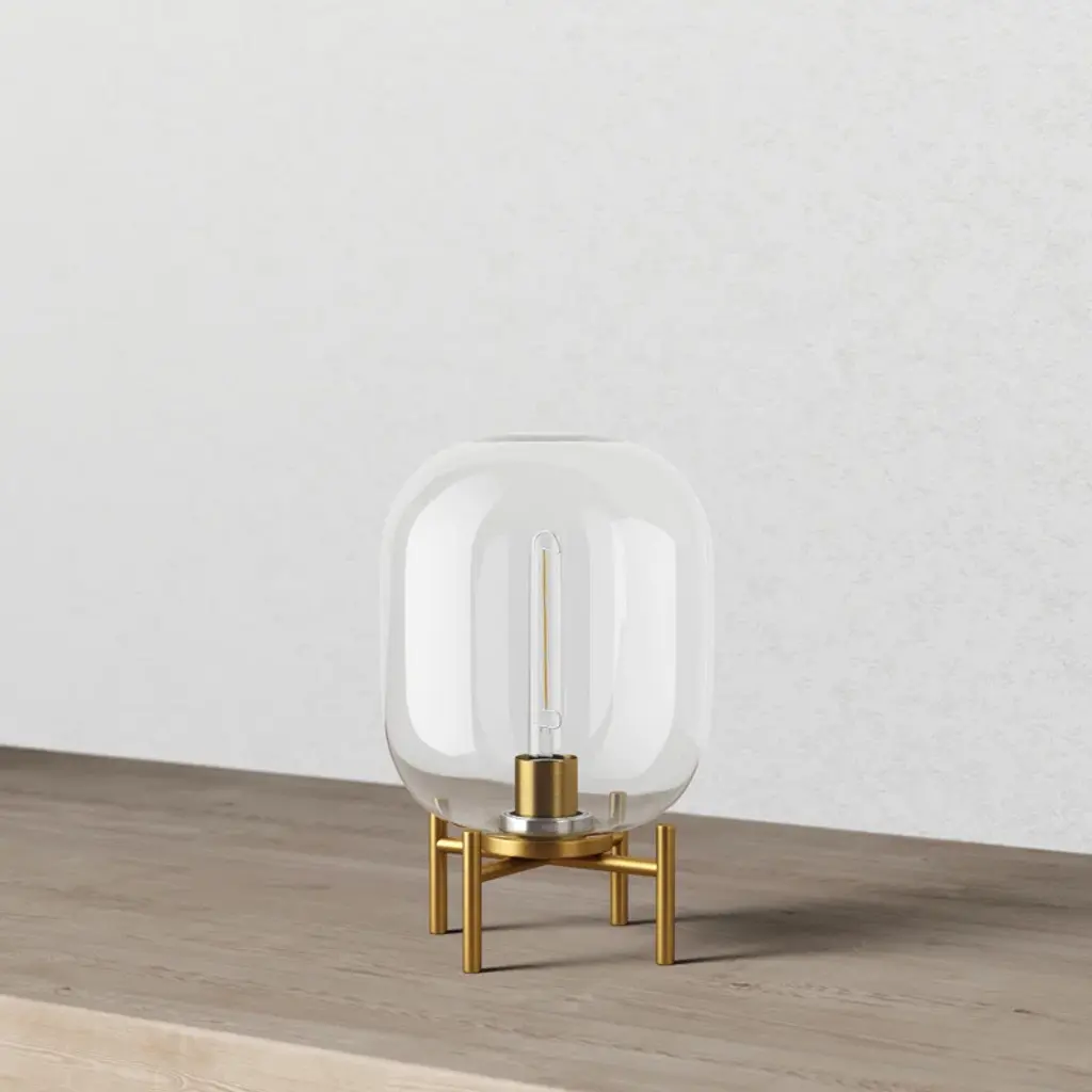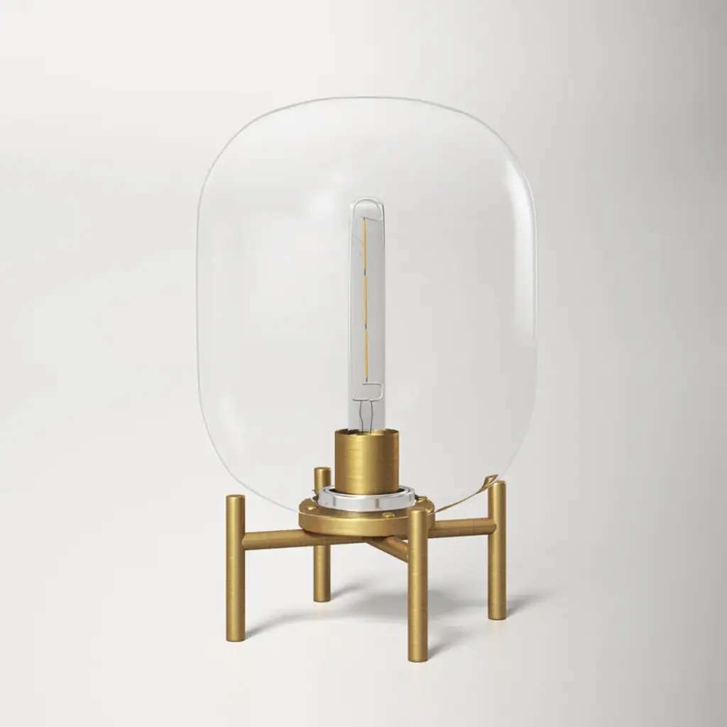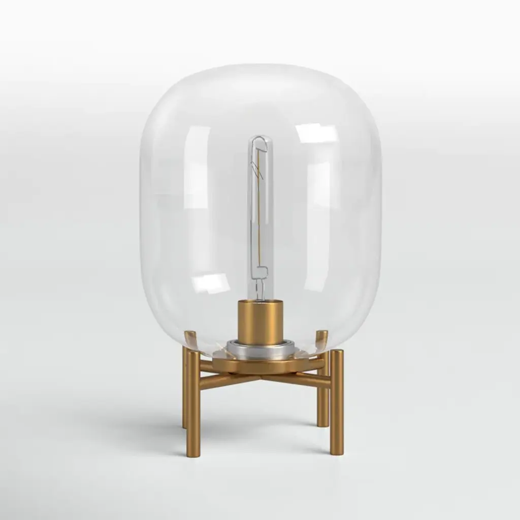 Oversized style, little package – this petite table lamp is ready to brighten your home without taking up too much surface area. It features a clear glass dome shade that rests on a four-legged metal base with a neutral finish for a vintage vibe with a retro feel. This fixture accommodates a single 60 W bulb (not included) and is powered by a switch. And since it measures just 15'' H x 10'' W x 10'' D, you can easily add it to a nightstand, desk, or end table.