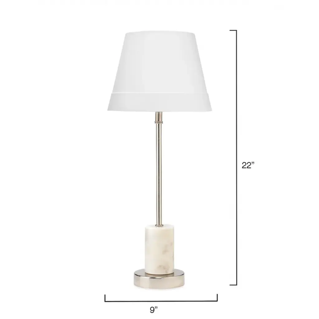 Made by artisans with a rich mix of materials, this accent lamp creates a stunning focal point on any tabletop. Featuring an iron base grounded by a veined white marble base and topped with a linen shade.