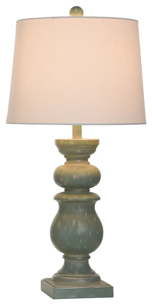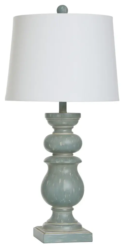 Darcy Polyresin Table Lamp 30"h, Blue-Green, White Linen Shade