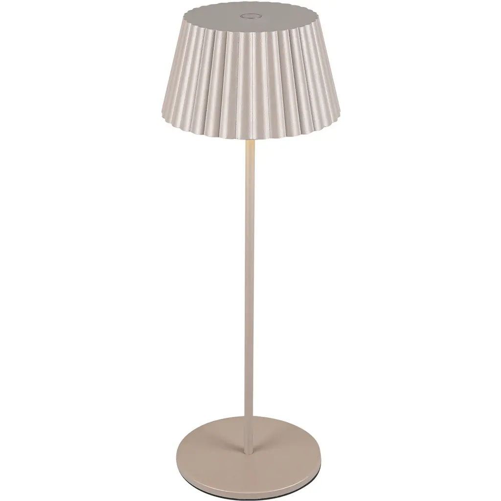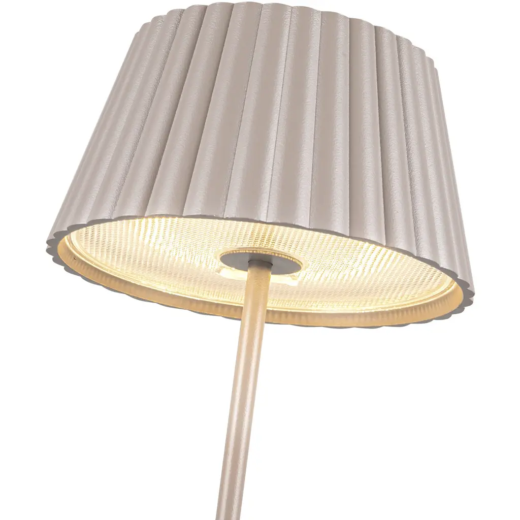 Dario features a modern pleated metal shade and an intuitive hold-to-dim feature it redefines convenience. With Dario, rechargeable ambiance is at your fingertips, effortlessly adjustable to suit any mood. Illuminate your space with grace and ease, courtesy of the Dario integrated LED table lamp.