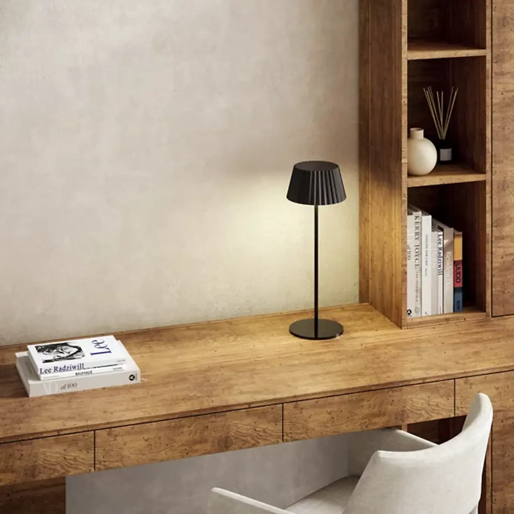 The Dario LED Table Lamp from Kuzco Lighting combines sleek modern design with convenience, featuring a stylish pleated metal shade and an intuitive hold-to-dim function for effortless control. This rechargeable LED table lamp offers customizable ambiance at your fingertips, allowing you to adjust the brightness to match any mood or setting. Whether used for task lighting or to create a cozy atmosphere, its design and practical features make it a versatile addition to any space.